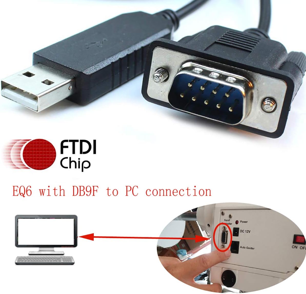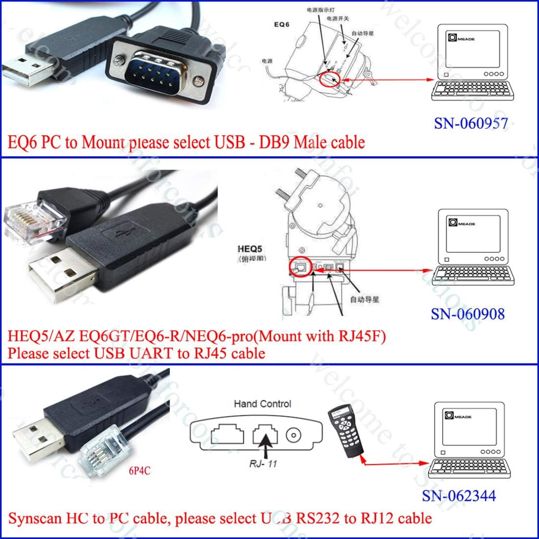 Telescopes Equatorial Mount Control Cable for Skywatcher HEQ5pro AZEQ5 AZEQ6 EQ6-R Support EQMOD ASCOM Set Up Sofware Manual Download (6ft/180cm,Asiair or PC to Mount Black)