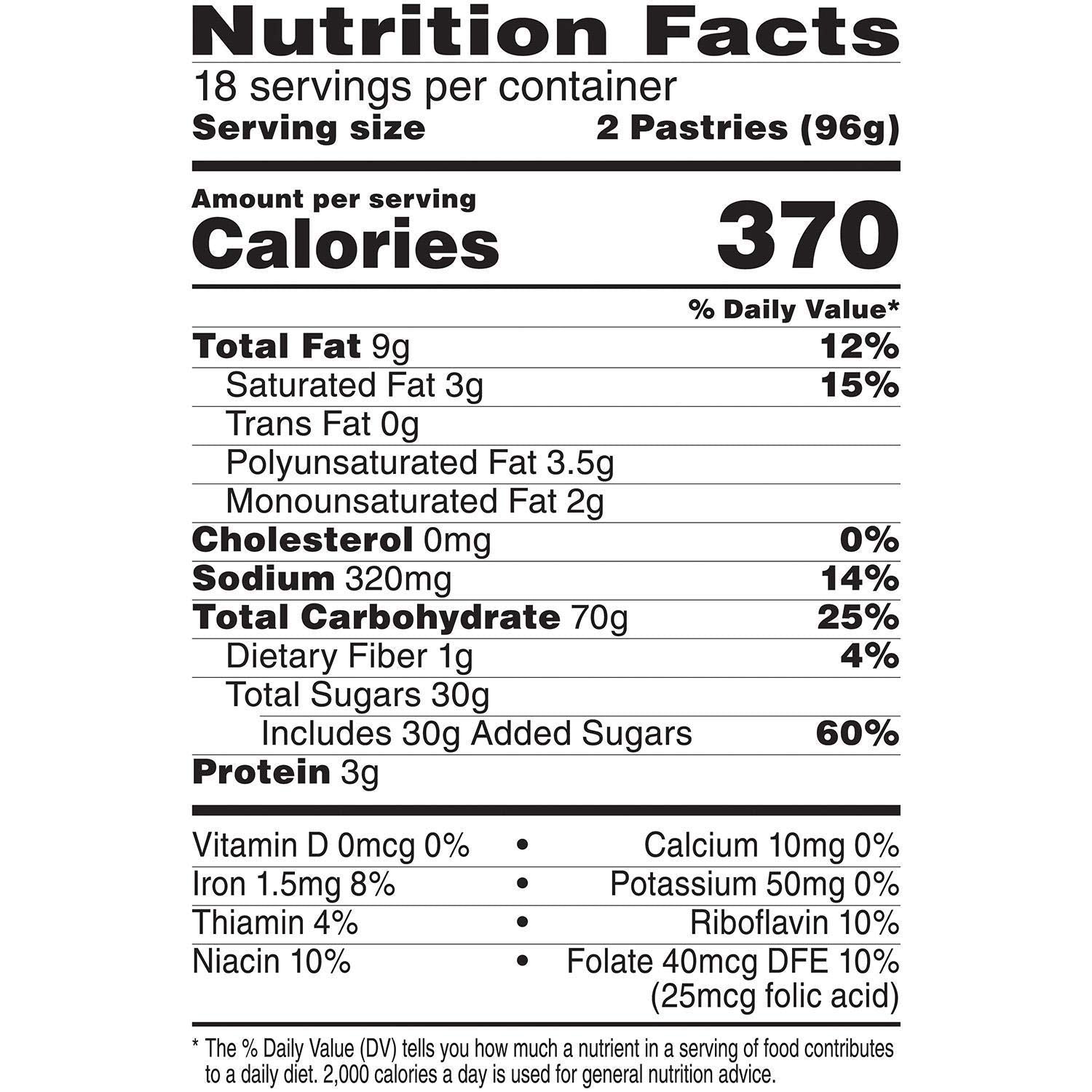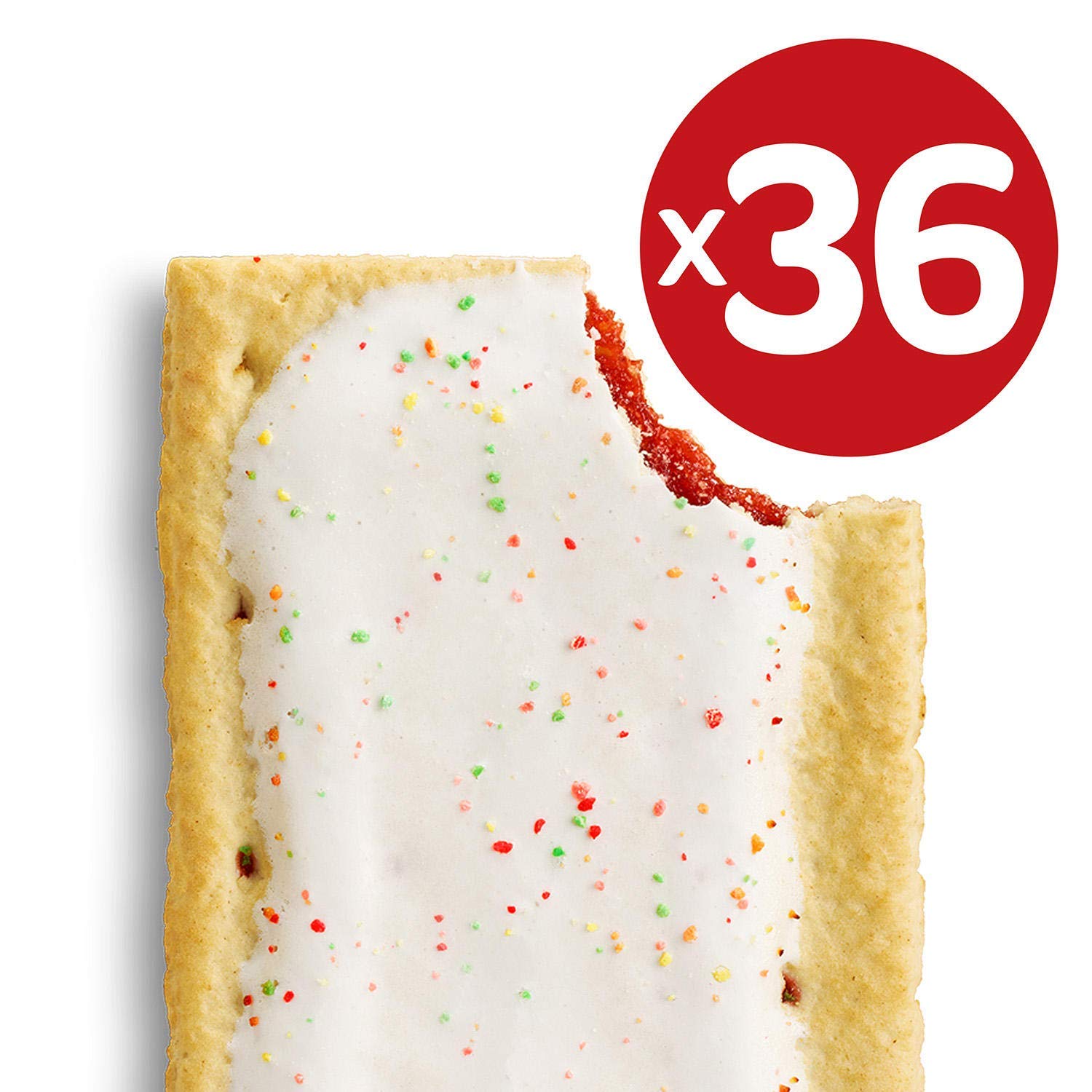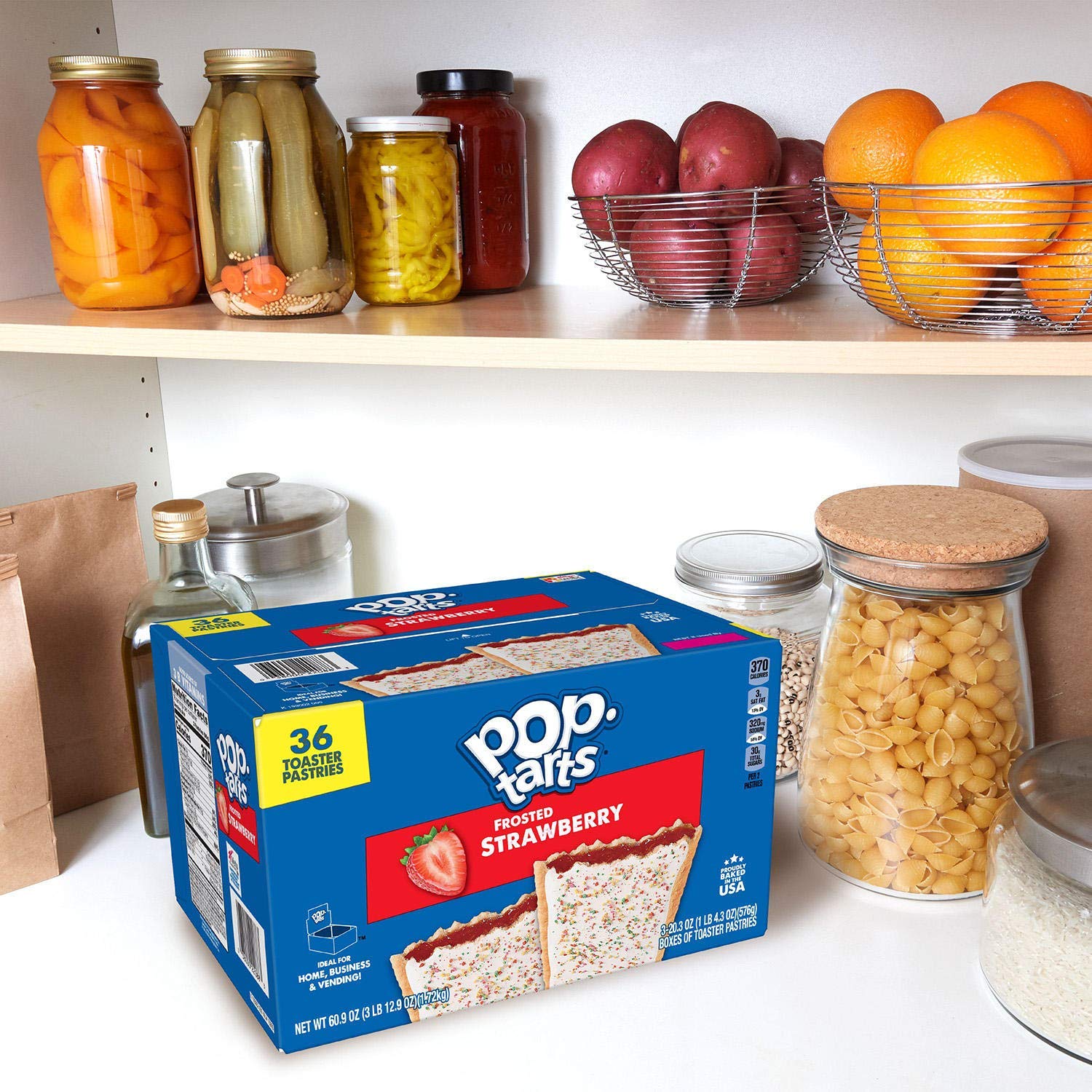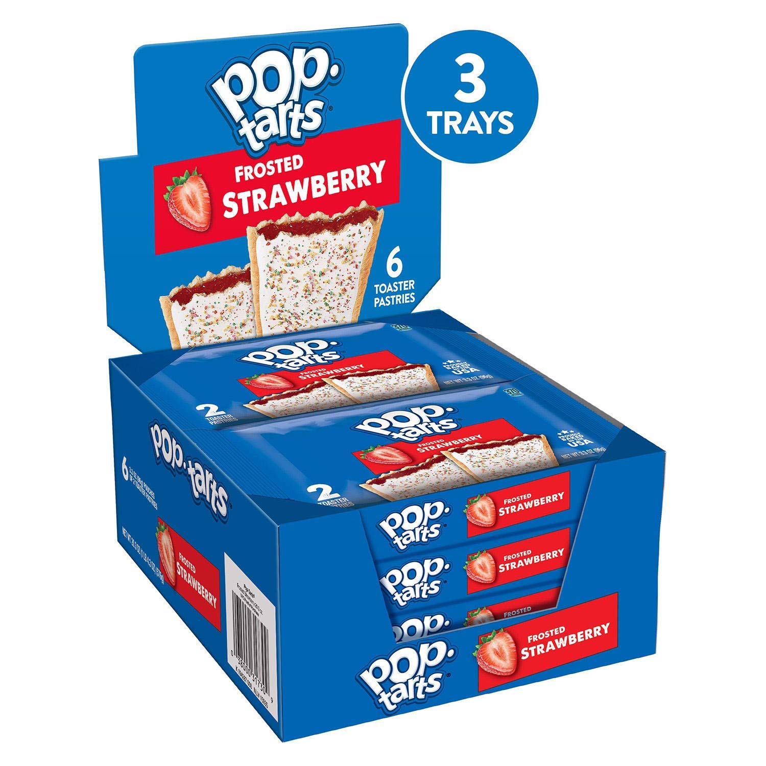 Pop-tarts frosted Strawberry toaster pastries are a delicious treat to look forward to. Jump-start your day with a sweet and decadent blast of gooey, strawberry-flavored filling encased in a crumbly pastry crust, topped with yummy frosting and crunchy sprinkles. A quick and tasty anytime snack for the whole family, Pop-Tarts toaster pastries are an ideal companion for lunchboxes, after-school snacks, and busy, on-the-go moments. Not just for mornings, the versatile deliciousness of Pop-Tarts fits into your lifestyle just about anywhere there's time for a snack. Store them in your desk drawer for a pick-me-up at the office, keep them on hand in your pantry for a sweet after-dinner treat, or even bring some in the car for a satisfying snack on the road. These toaster pastries also make welcome additions to care packages, goodie bags, and gift baskets-a pleasant surprise friends and family will be delighted to unwrap. Just pop them in your toaster for a crisp, warm crust, heat them in the microwave, or enjoy them straight out of the foil with a glass of ice-cold milk.