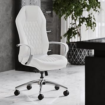 ZURI Furniture Modern Ergonomic Sterling Genuine Leather Executive Chair with Aluminum Base - White