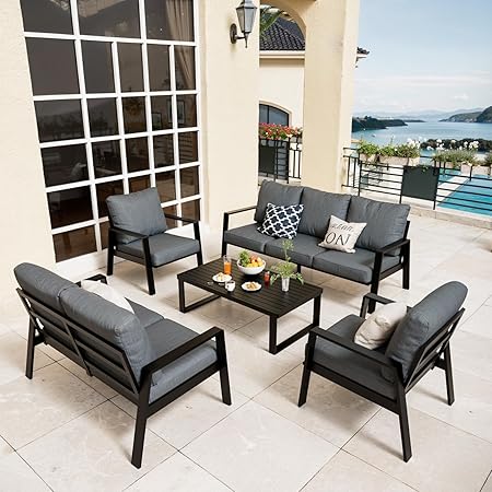 Aluminum Patio Furniture Set, 5 Piece Modern Outdoor Conversation Sofa with Coffee Table, 5.5'' Cushions, All-Weather Patio Sectional for Balcony, Backyard, Poolside, Deck, Gray