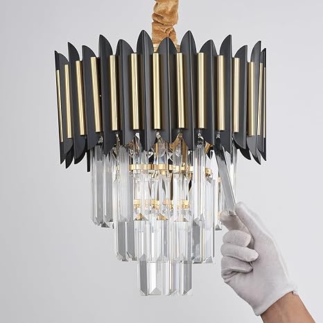 4-Light Modern Black Gold Crystal Pendant Light 3-Tier K9 Crystal Hanging Light 13.18" Luxury Crystal Chandelier for Dining Room Living Room Bedroom Entryway