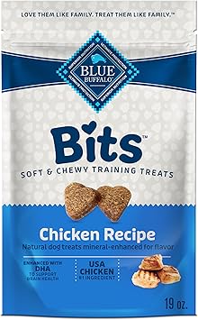 Blue Buffalo Bits Soft Dog Treats for Training, Made With Natural Ingredients & Enhanced with DHA, Chicken Recipe, 19-oz Bag