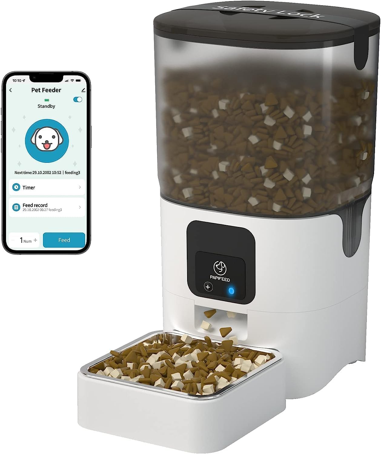 PAPIFEED Automatic Cat Feeders with Remote APP Control: WiFi-Enabled Dry Food Dispenser, Detachable for Easy Cleaning, Up to 30 Meals Per Day for Cat, Dog, Multiple Pet, Works with Alexa (25 Cup/6L)