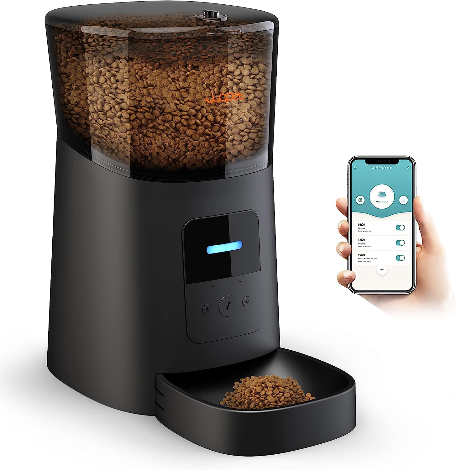 WOPET 6L Automatic Cat Feeder, Wi-Fi Enabled Smart Pet Feeder for Cats and Dogs, Auto Dog Food Dispenser with Portion Control, Distribution Alarms and Voice Recorder Up to 15 Meals per Day