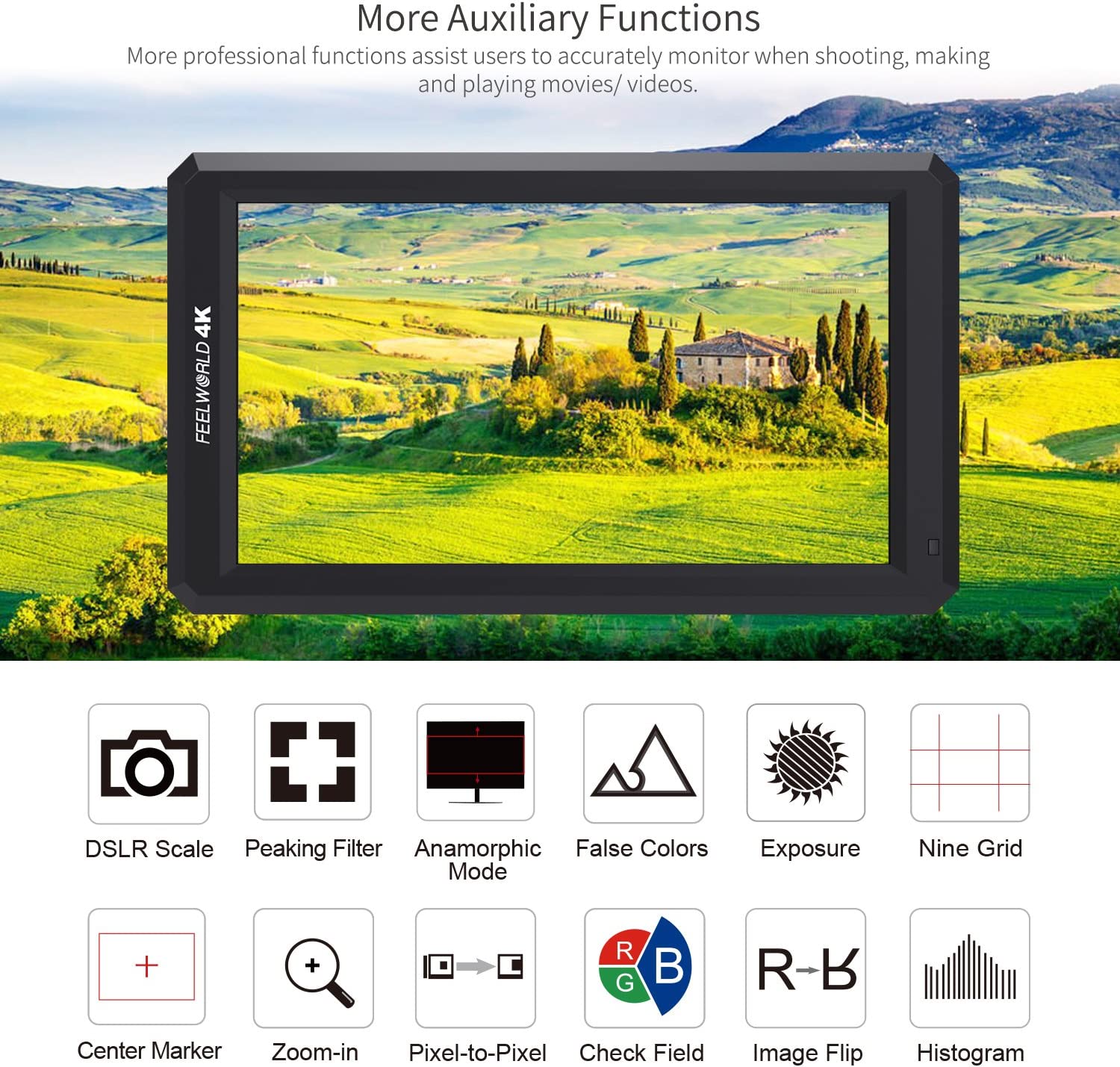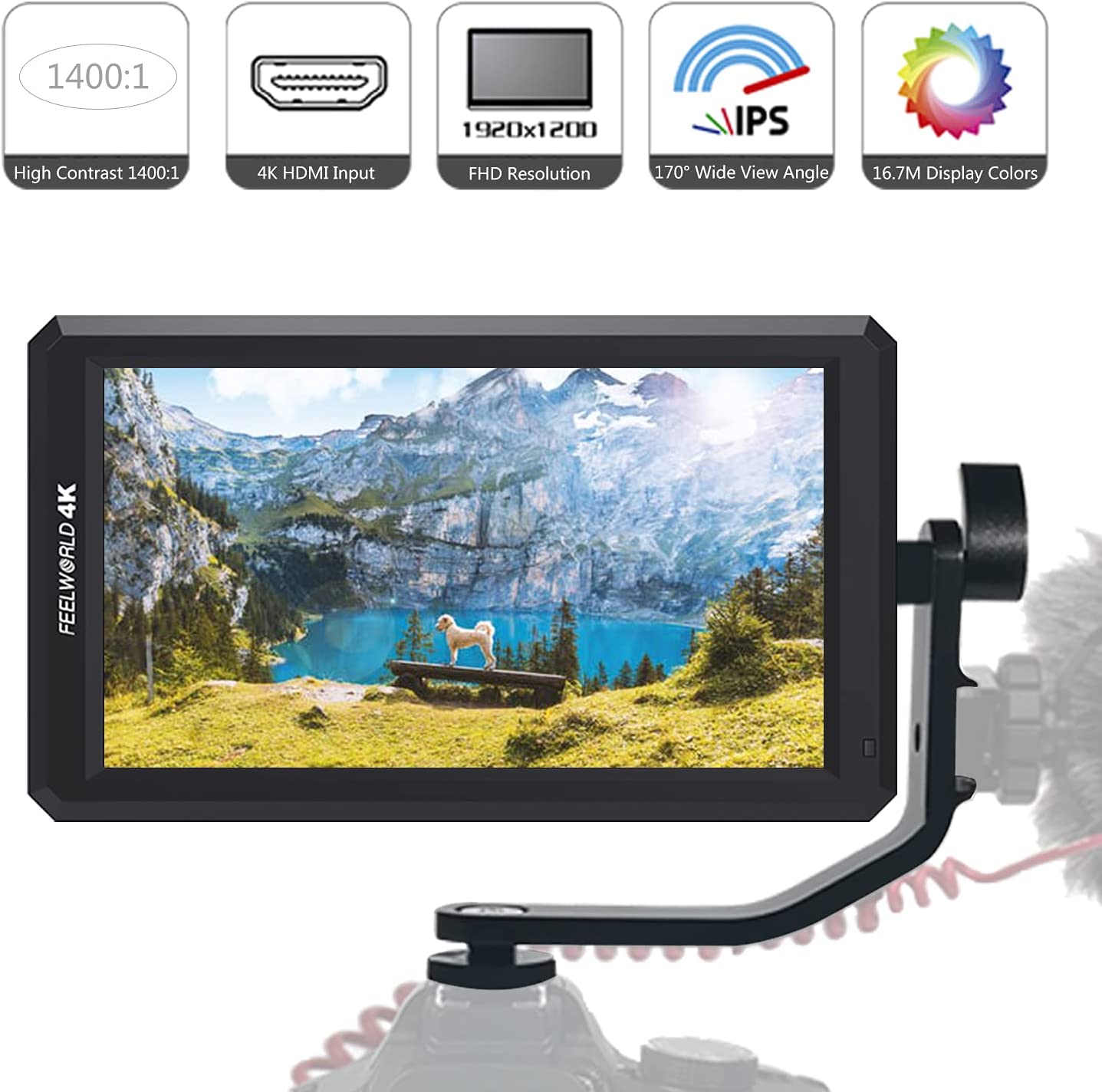 • [5.7inch FHD Screen] Feelworld F6 native resolutions 1920x1080. 450 nits brightness. 1400:1 High contrast.With sunshade included. Ideal monitor for indoor and outdoor shootings.
