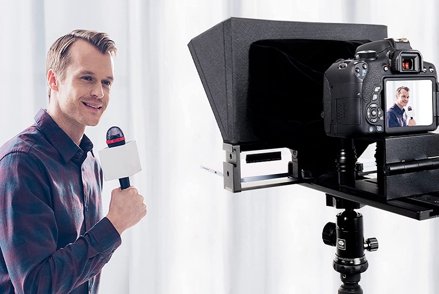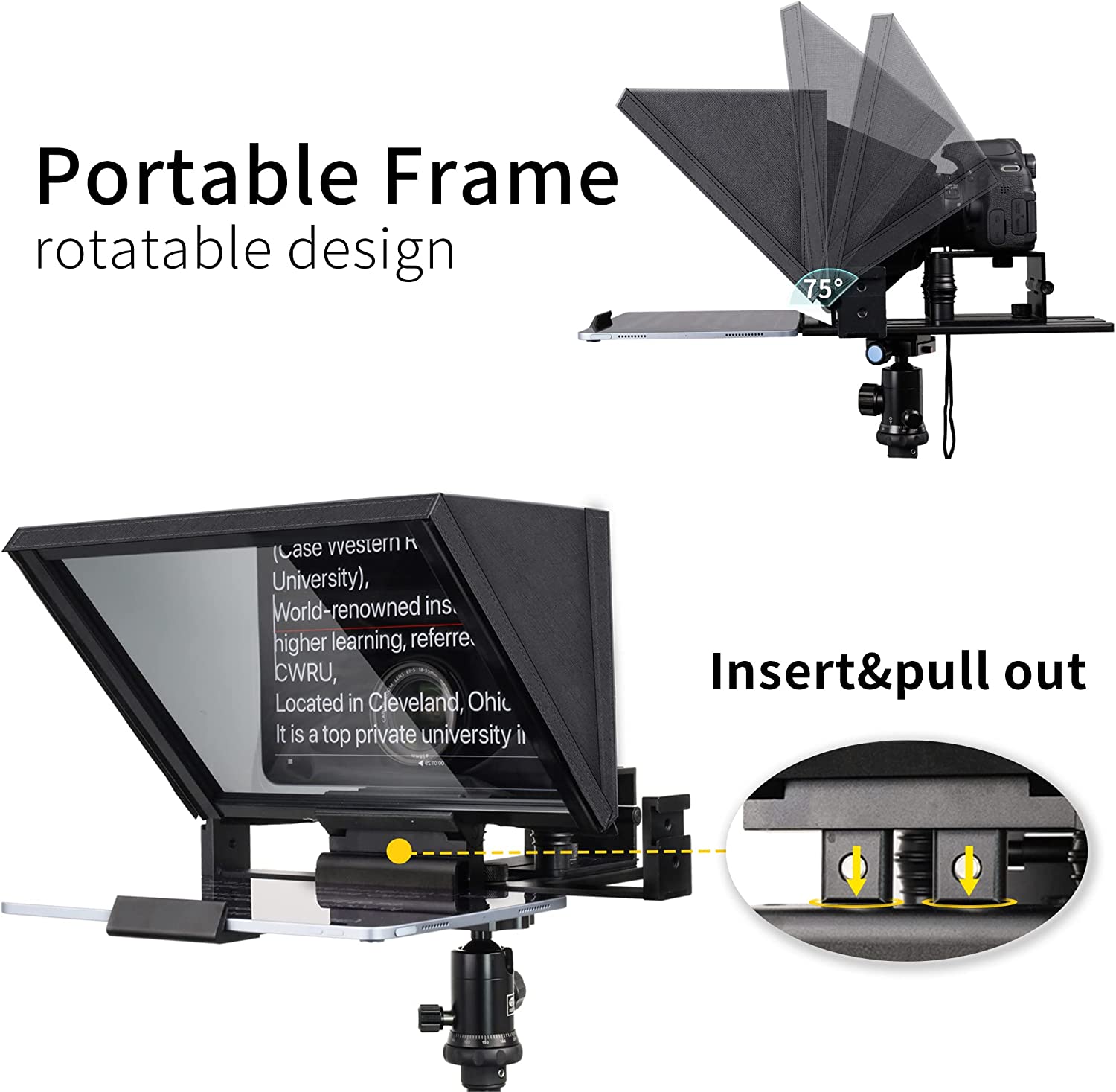 Package includes: 1*Teleprompter, 1* remote control, 1* handbag.