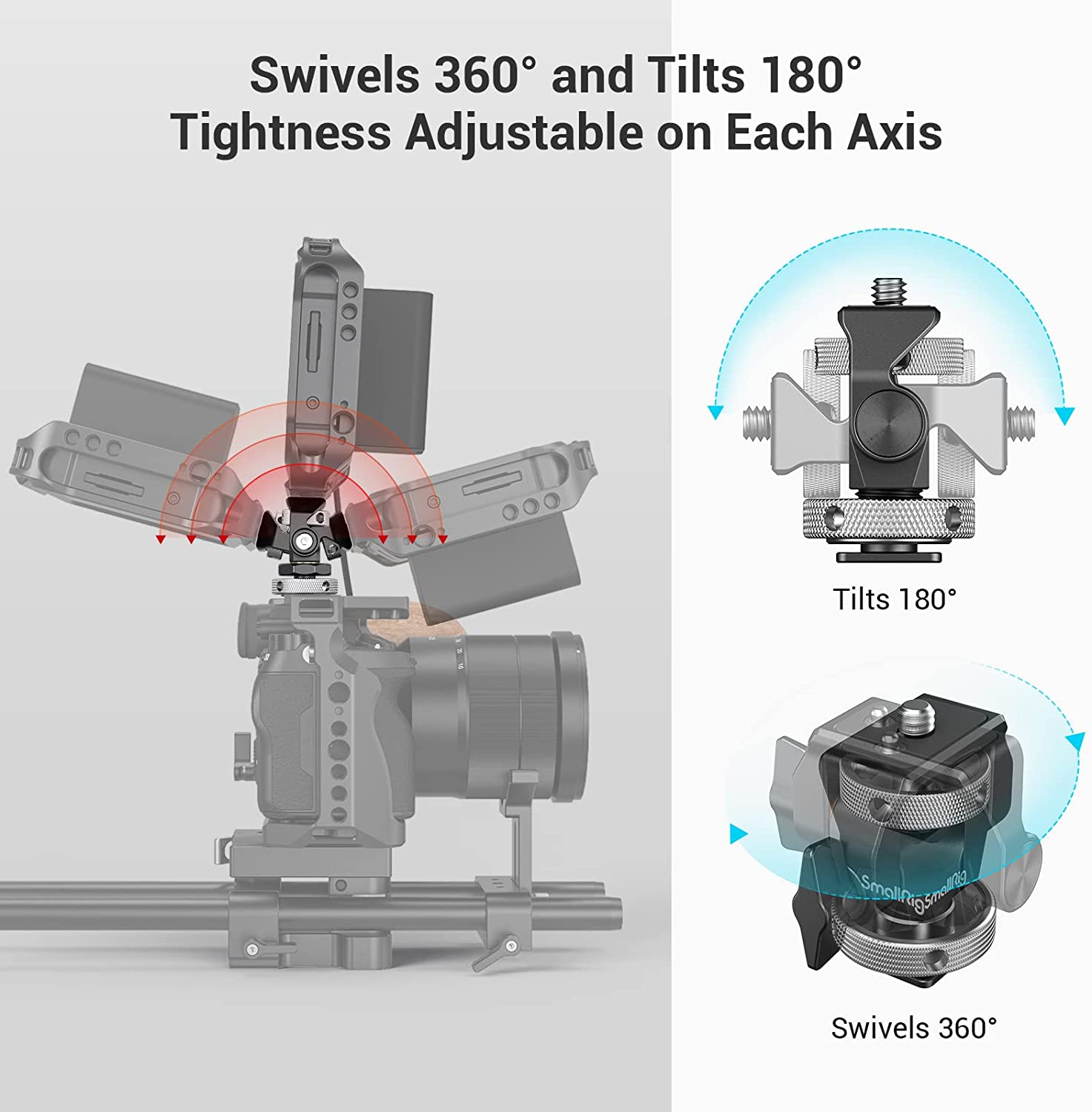 SmallRig Swivel and Tilt Monitor Mount Adjustable Monitor Holder with Bouncy Locating Pins and Cold Shoe Mount for 5" and 7" Monitors - 2905B