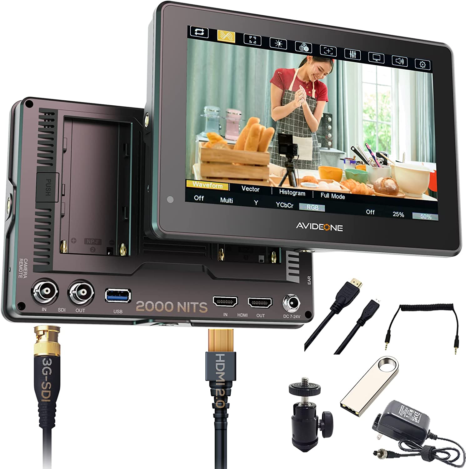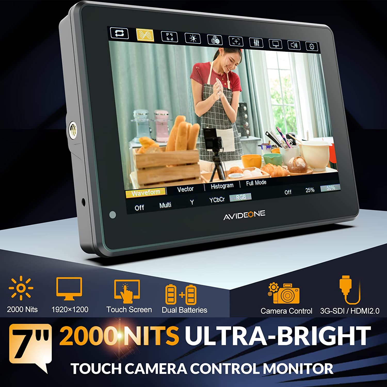 Touch Screen Camera Control Monitor with 7 Inch 2000nit Full HD 1920x1200 3G-SDI,4K HDMI 2.0 DSLR Camera Field Monitor with Waveform 3D LUT, HDR for Broadcast Studio Flim Director
