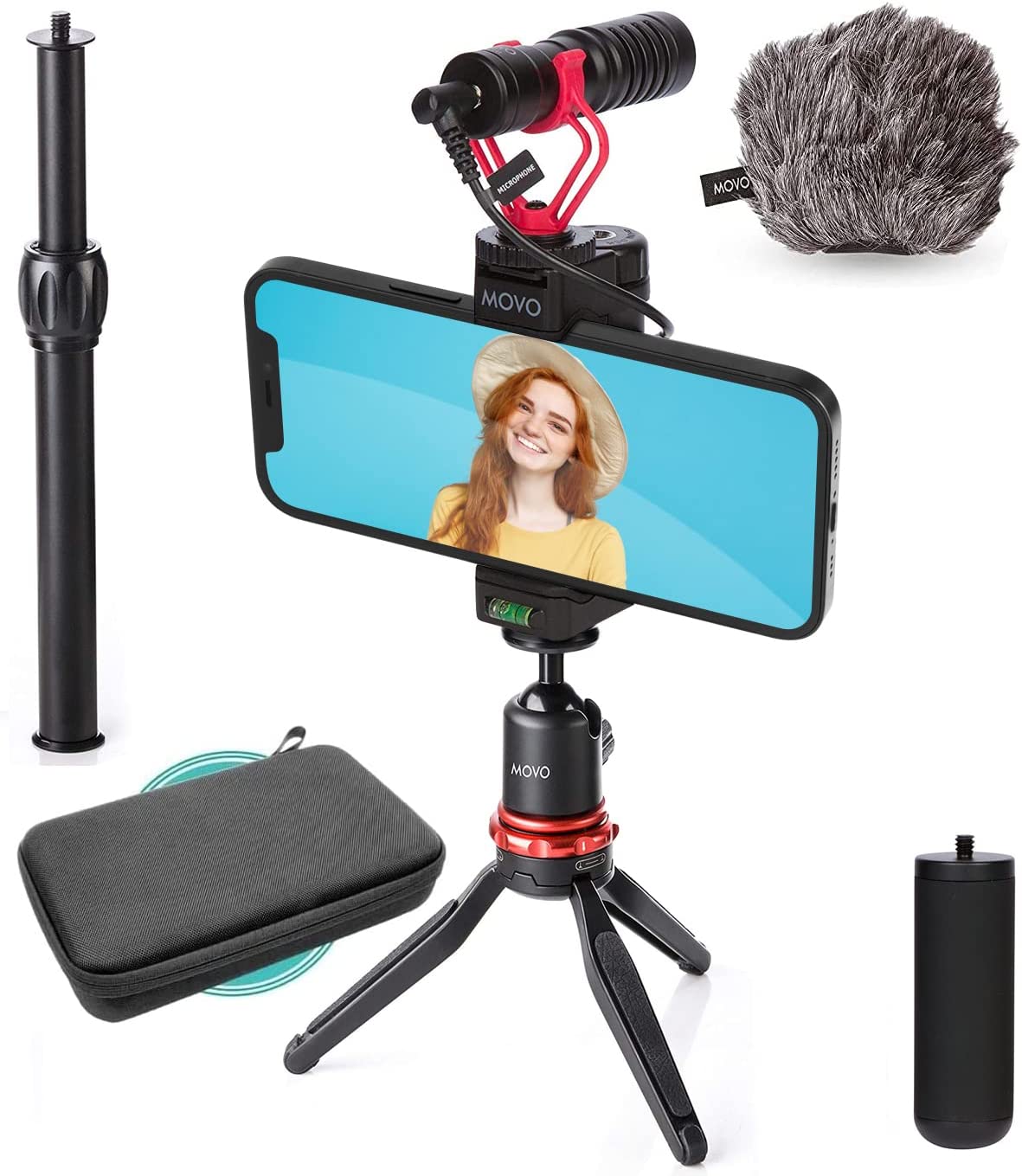 Movo VXR10+ Smartphone Vlogging Kit with Mini Tripod, Phone Grip, and Video Microphone Compatible with iPhone and Android - for YouTube, TIK Tok, Filming, Vlogging