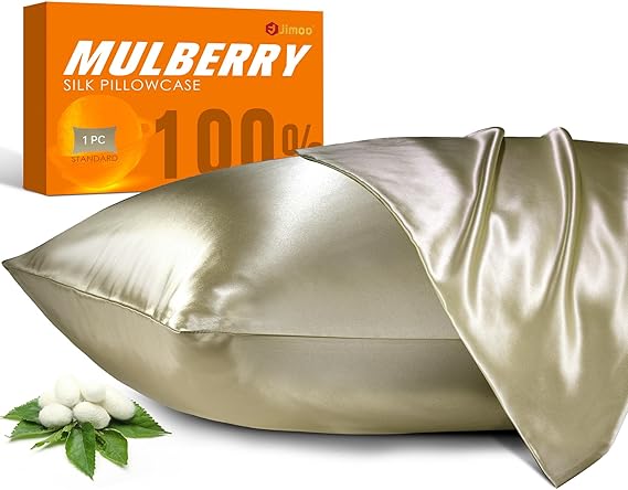 100% Mulberry Silk Pillowcase for Hair and Skin, 22 Momme Natural Silk Pillow Case with Zipper, Both Sided Pure Silk Pillow Cover for Women Mom Men (Champagne, Standard 20''�¾26'')