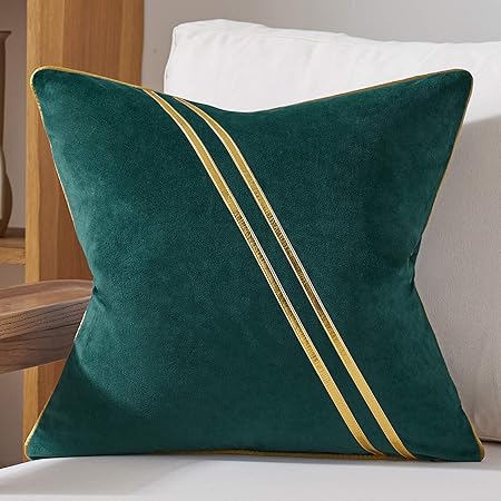 Avigers 18 x 18 Inch Teal Gold Leather Striped Lines Velvet Cushion Case Luxury Modern Throw Pillow Cover Decorative Pillow for Couch Living Room Bedroom Car