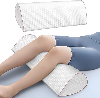 Knee Pillow for Back Sleeping & Pain Relief, Leg Pillow for Side Sleeping, Ergonomic Memory Foam Bolster Pillow for Spinal Alignment, Breathable Washable Cover, Portable Bed Pillow (White