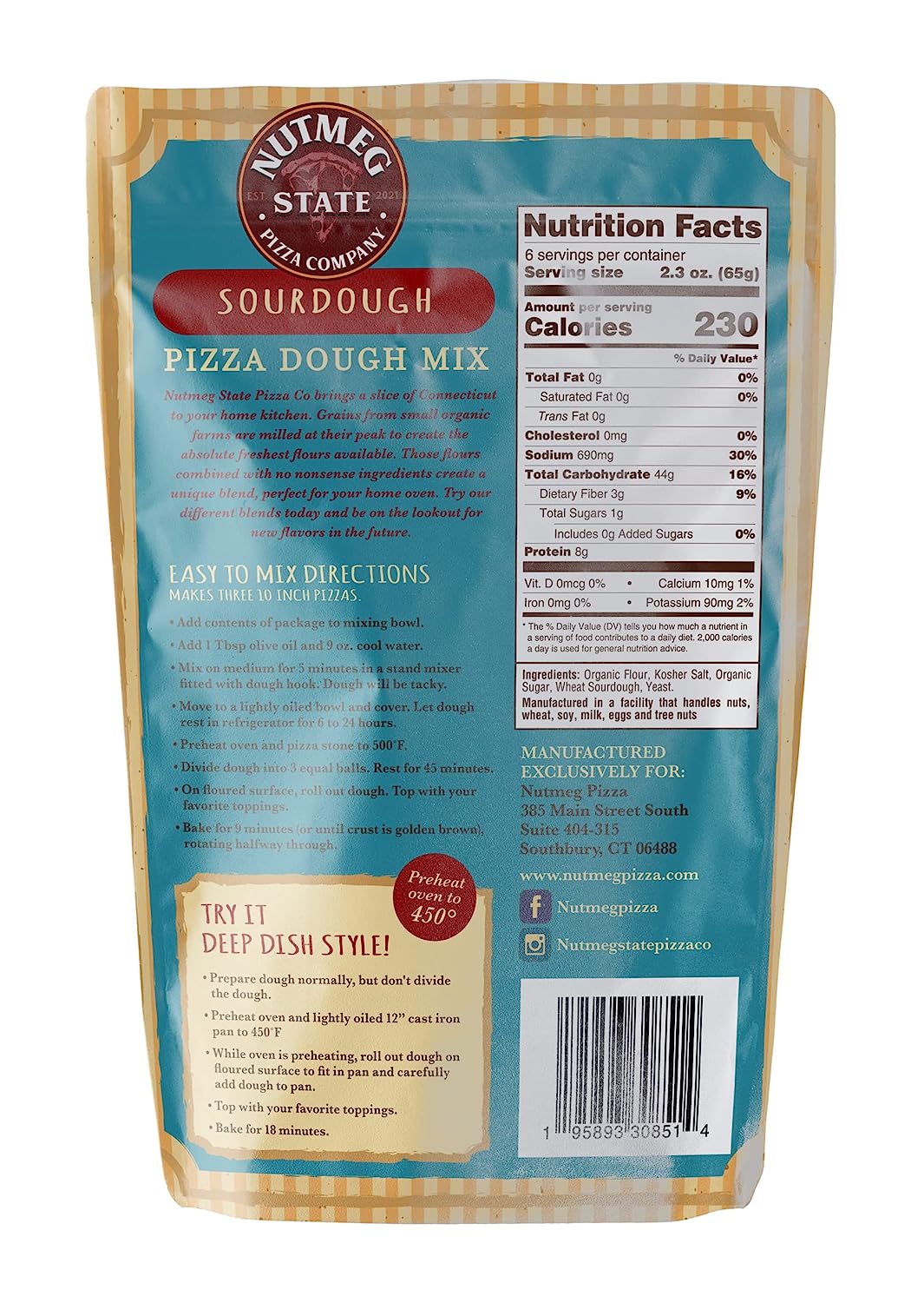 Skip the pizzeria delivery and enjoy quality time in the kitchen making pizza from scratch with Nutmeg State Pizza Company Organic Pizza Dough Mix. Each package allows you to create three 10” pizzas, a 12” deep-dish pizza, calzones or even flat breads. Top each crust with your favorite pizza sauce, cheese, meats and veggies to create great-tasting pizza right at home.