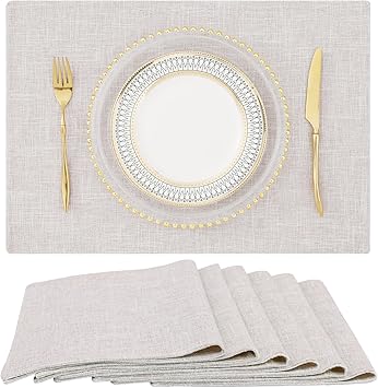 homing Neutral Beige Cloth Placemats Set of 6 _ÑÐ Cotton Linen Blend Washable Farmhouse Dining Table Mats for Indoors & Outdoors, Easy to Clean, 13 x 19 Inch