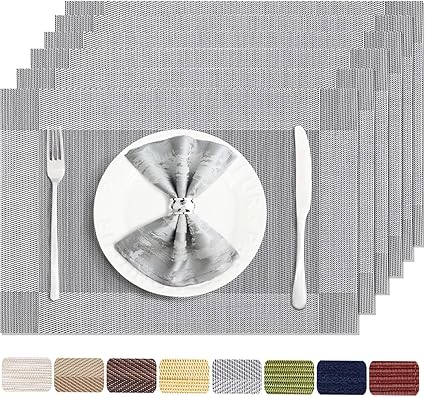 Placemats Set of 6 Washable&Wipeable Silver Placemats for Dining Table Kitchen Indoor Outdoor Table Mats Heat Resistant Non Slip Woven Vinyl Table Placemats (Grey«_Ô6PCS)