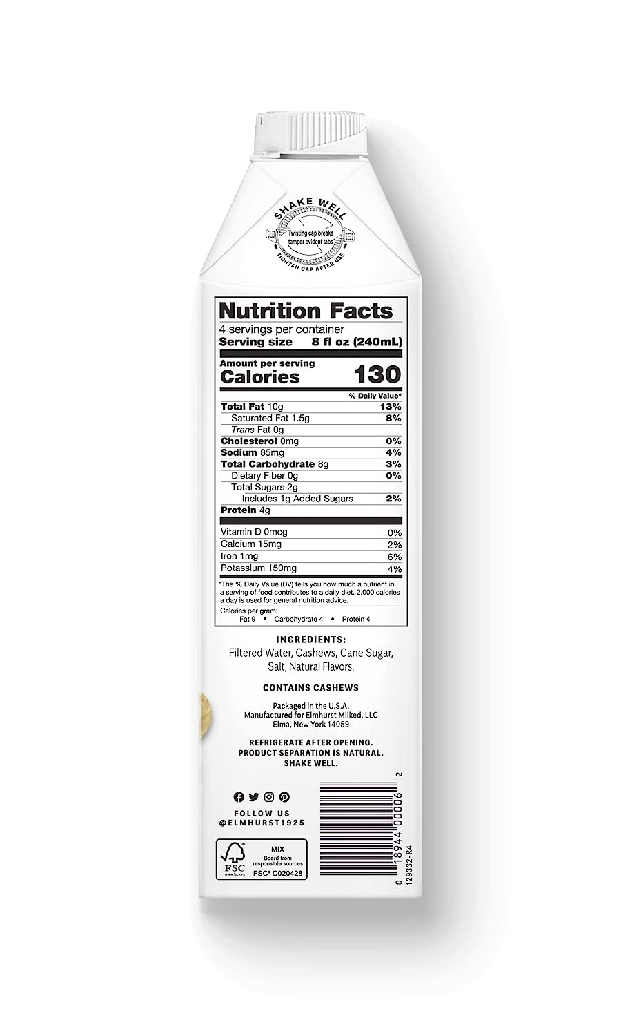 Made with two simple ingredients - cashews and water. For 3x the amount of cashews per serving for a creamy and tasty unsweetened cashew milk. Always vegan, kosher, dairy-free, and Carrageen-free.