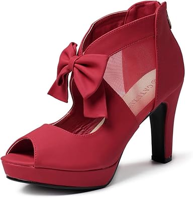 GATUXUS Open Toe Women Platform High Heel Shoes Bows Strappy Sandals