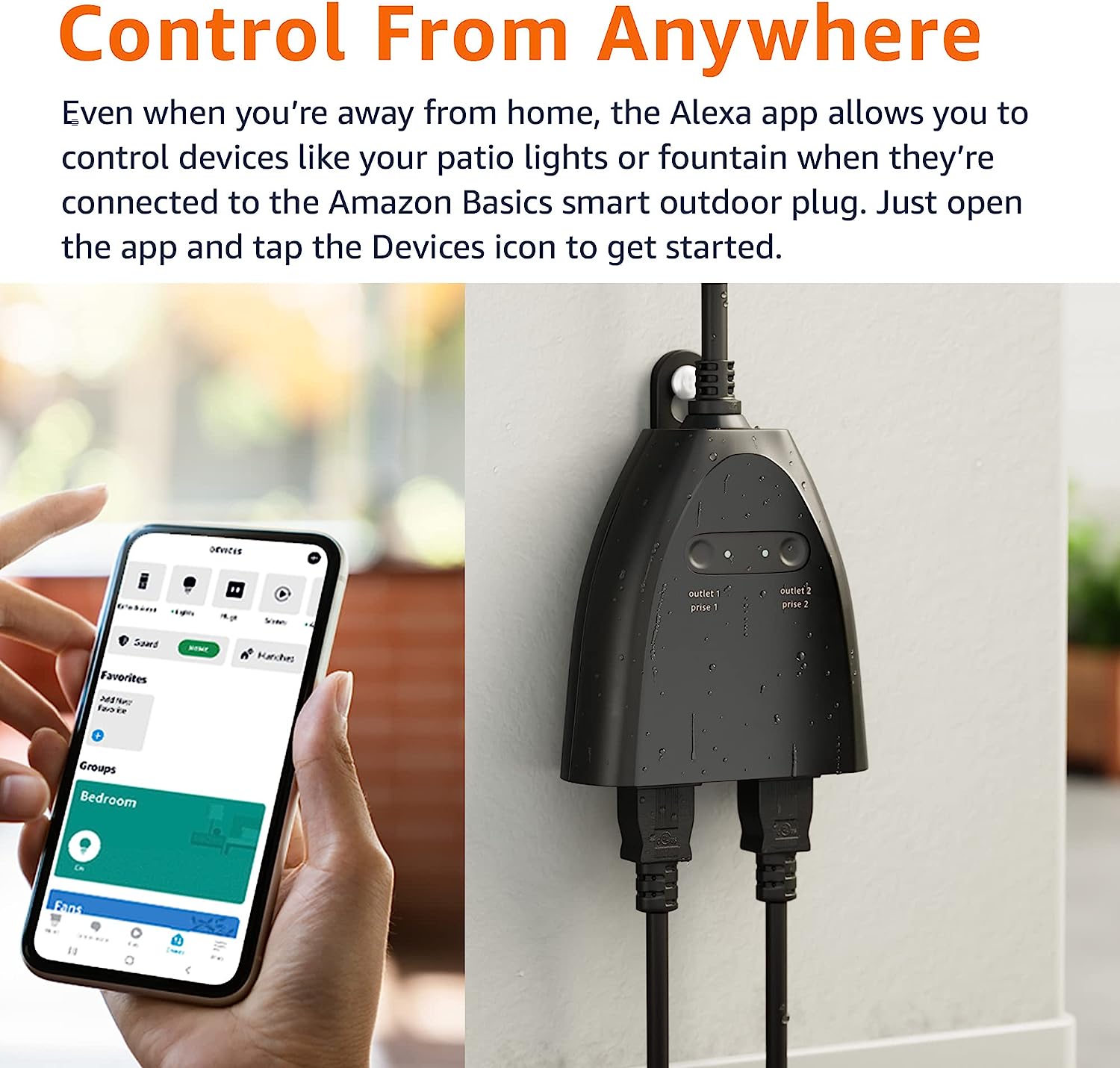 Amazon Basics Smart Outdoor Plug, Works with Alexa