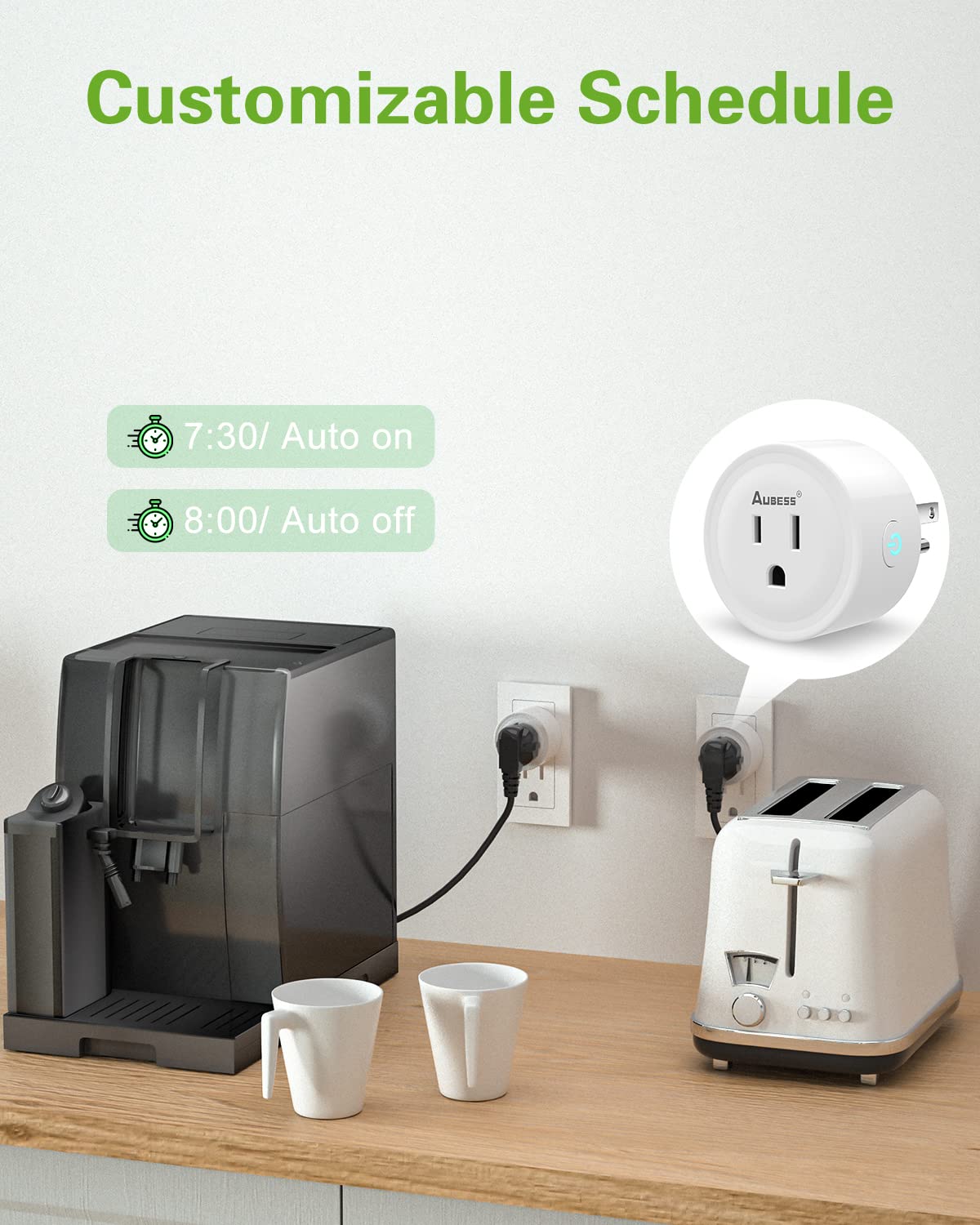 • 【Energy Monitoring】Aubess smart outlet has added energy monitoring statistics function, which can help you track the power, current and voltage of your appliances in real time on the App, and measure the power consumption of your appliances, Planned electricity consumption.
