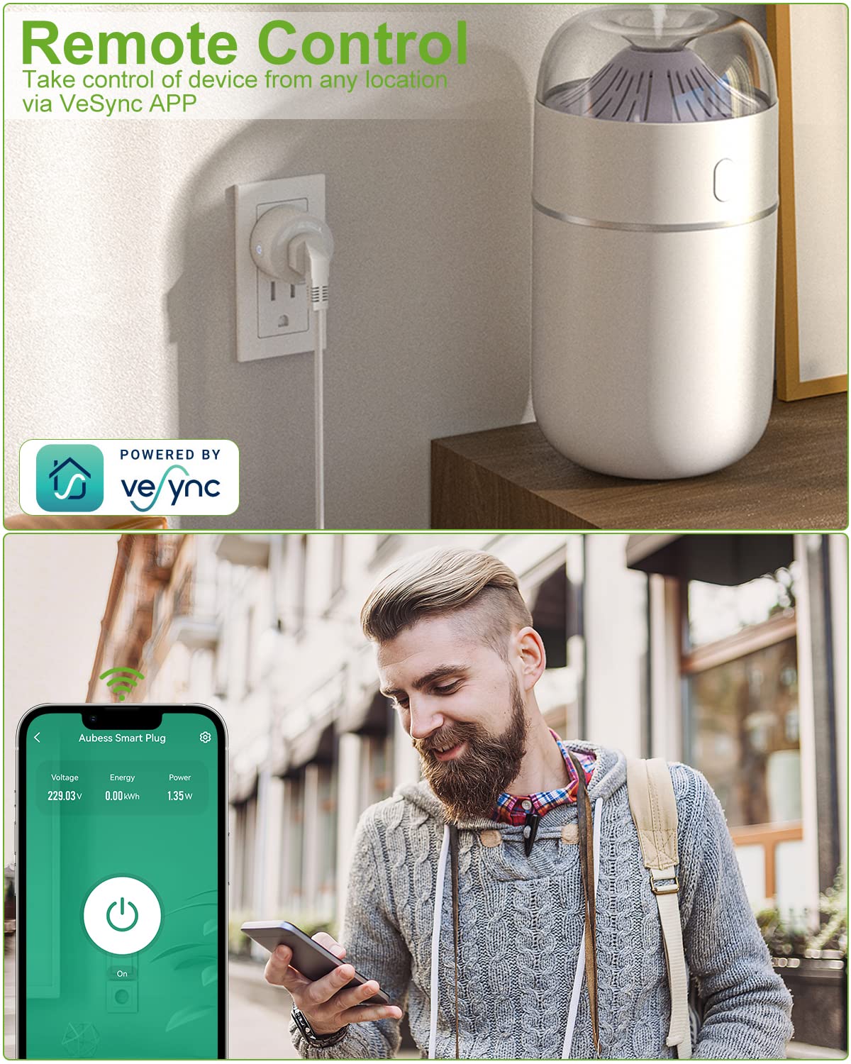• 【Easy Setup and Stable】Using the VeSync APP makes it easier and more stable to control alexa plug sockets than others. Open the VeSync app and search for Aubess smart plugs and you can successfully pair the smart outlet within minutes using the in-app instructions.