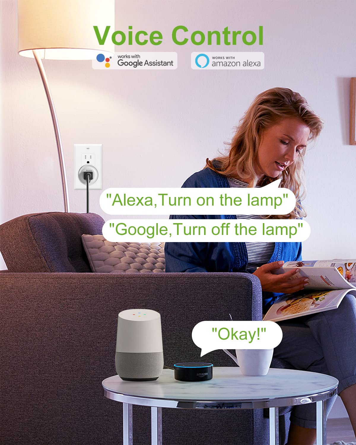 • 【Free-hands Control】Smart plugs that work with Alexa and Google Home Assistant. Just give a simple voice command to Alexa or Google Assistant to control your connected home devices.Convenient and comfortable.No hub required.