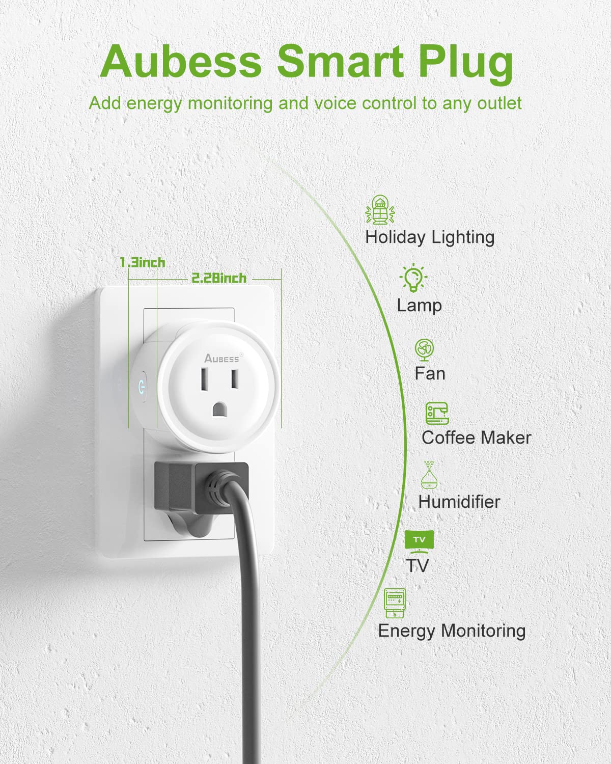 Aubess Smart Plug, Smart Outlet That Work with Alexa & Google Assistant, Alexa Smart Plugs with Energy Monitoring, Timer Schedule, VeSync APP Remote Control, No Hub Required