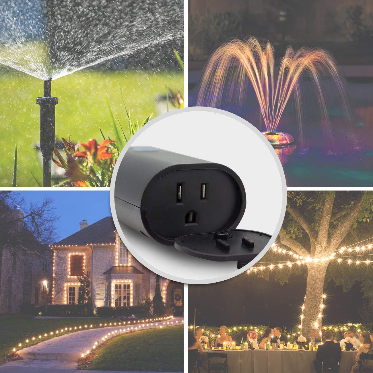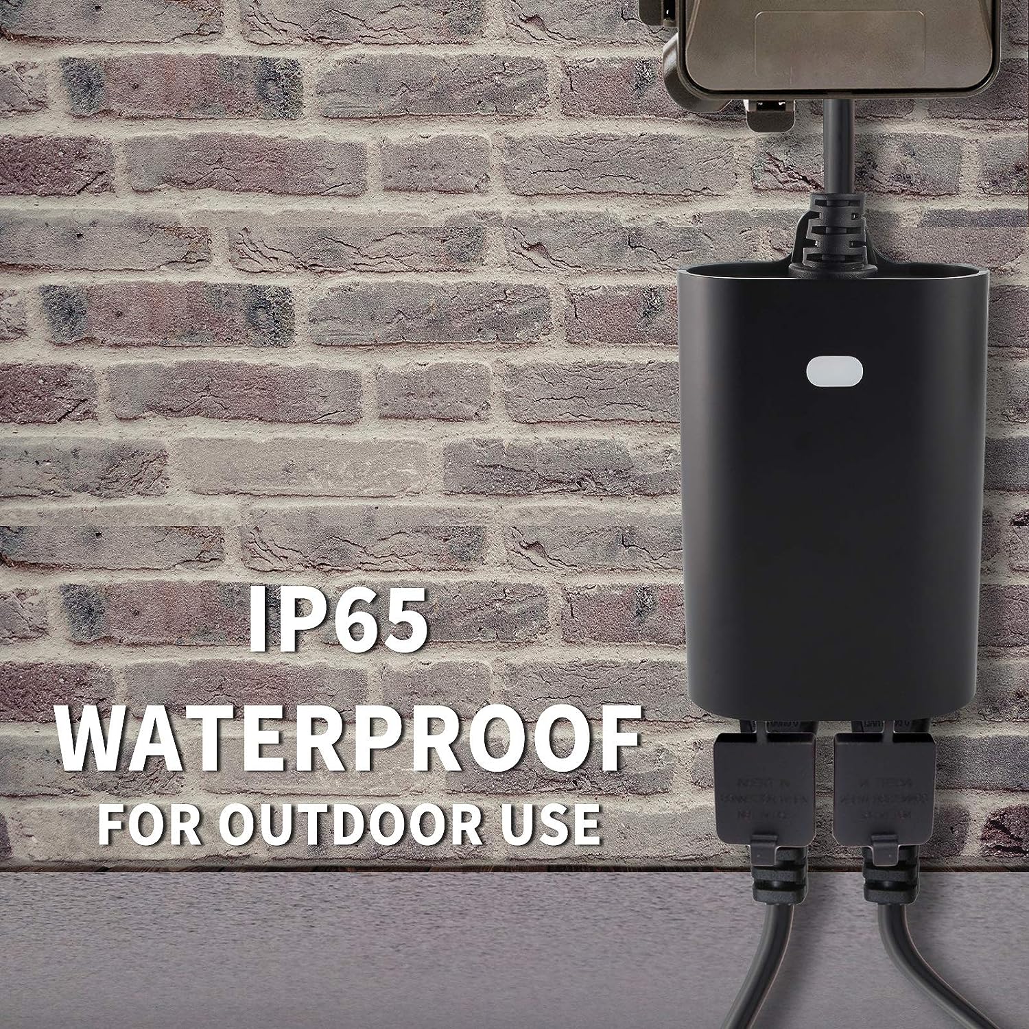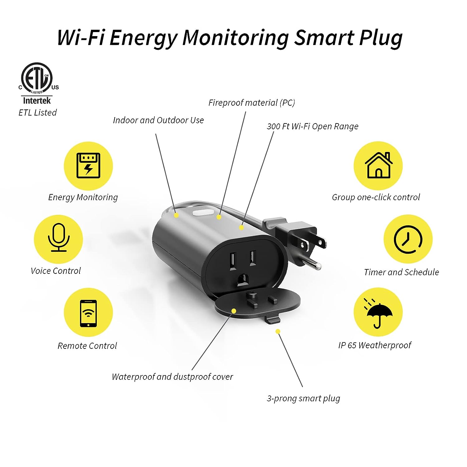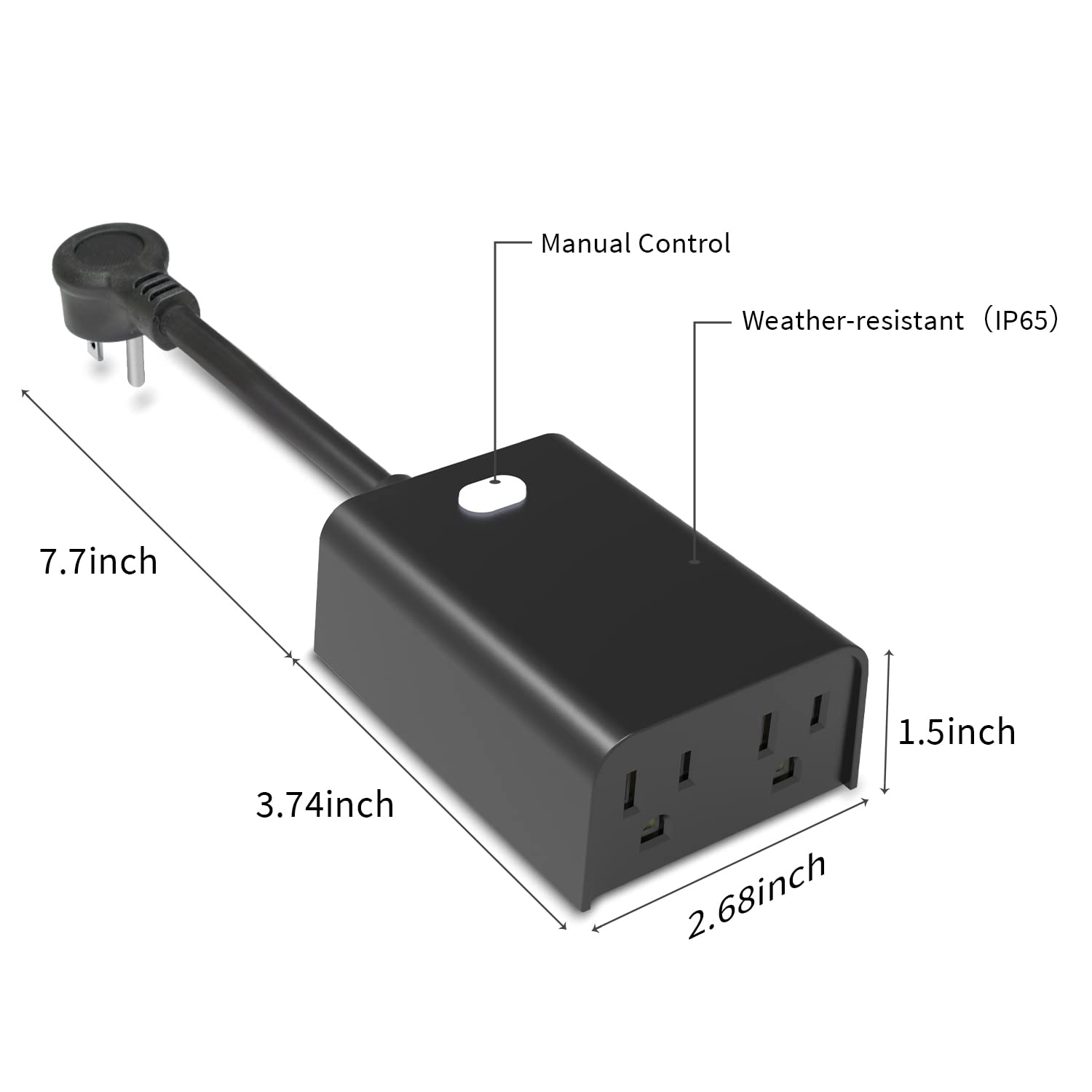 • Weatherproof Design: IP65 weatherproof outdoor smart plug for rainproof use outdoors. Smart plugs have a strict waterproof test. Waterproof design of the enclosure longer than outlets at the bottom makes it possible to achieve a waterproof effect without a cover.