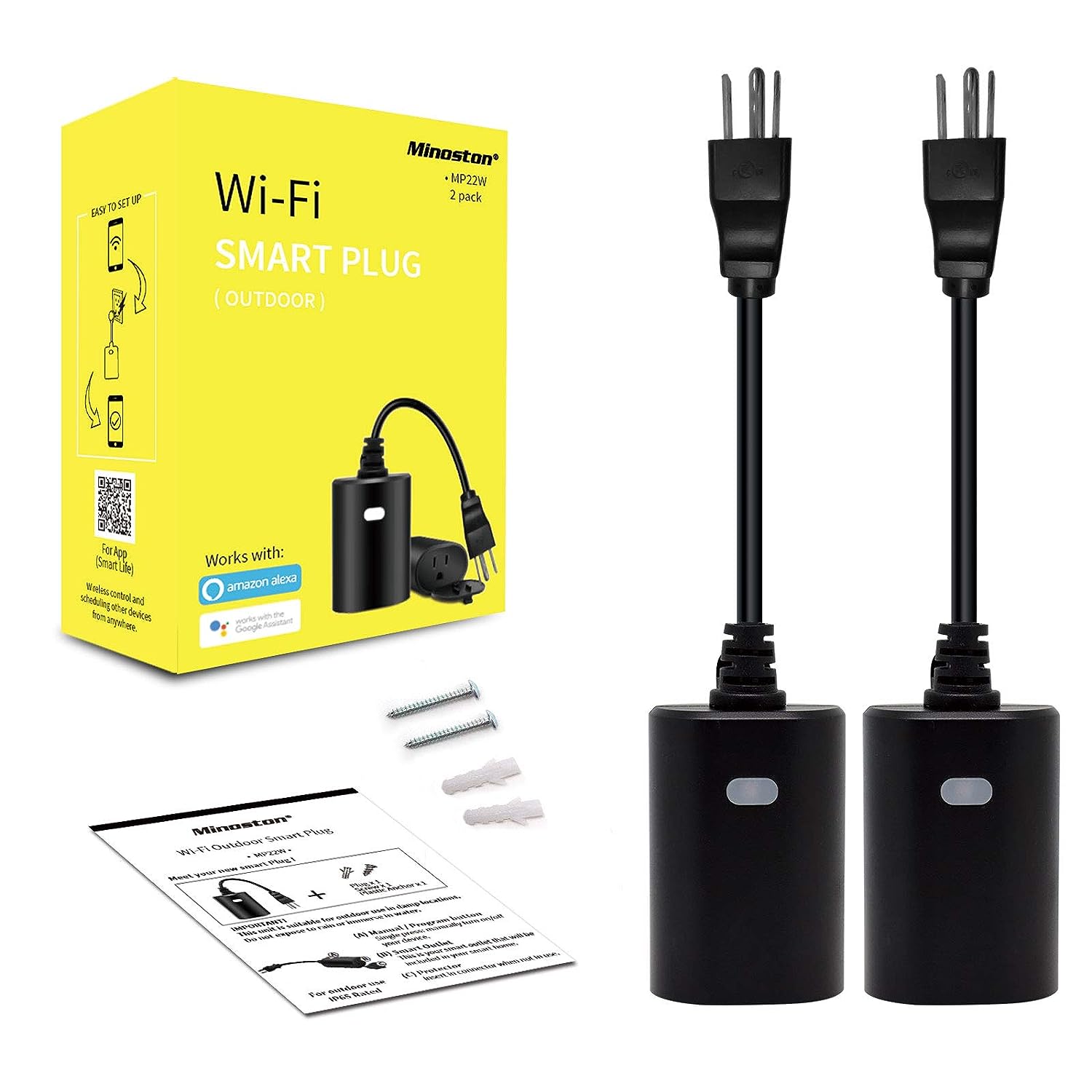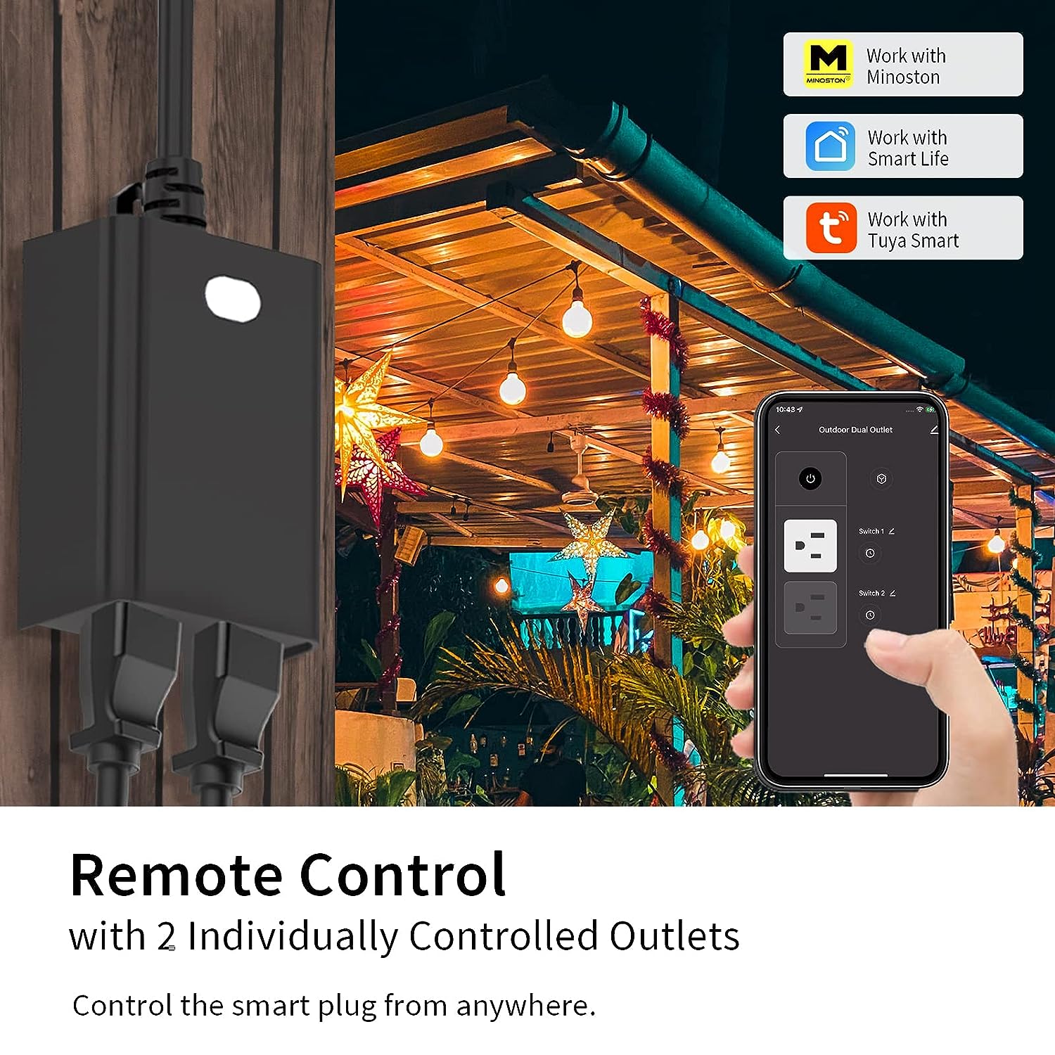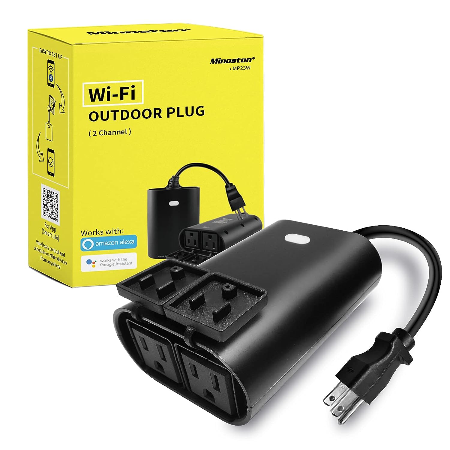 Minoston Outdoor Smart Plug Wi-Fi Plugs Outlet with 2 Individual Control Sockets, Weather-Resistance, Work with Alexa, Google Home, 125V, 2.4 GHz Wireless Frequency, No Hub Required(MP24W)