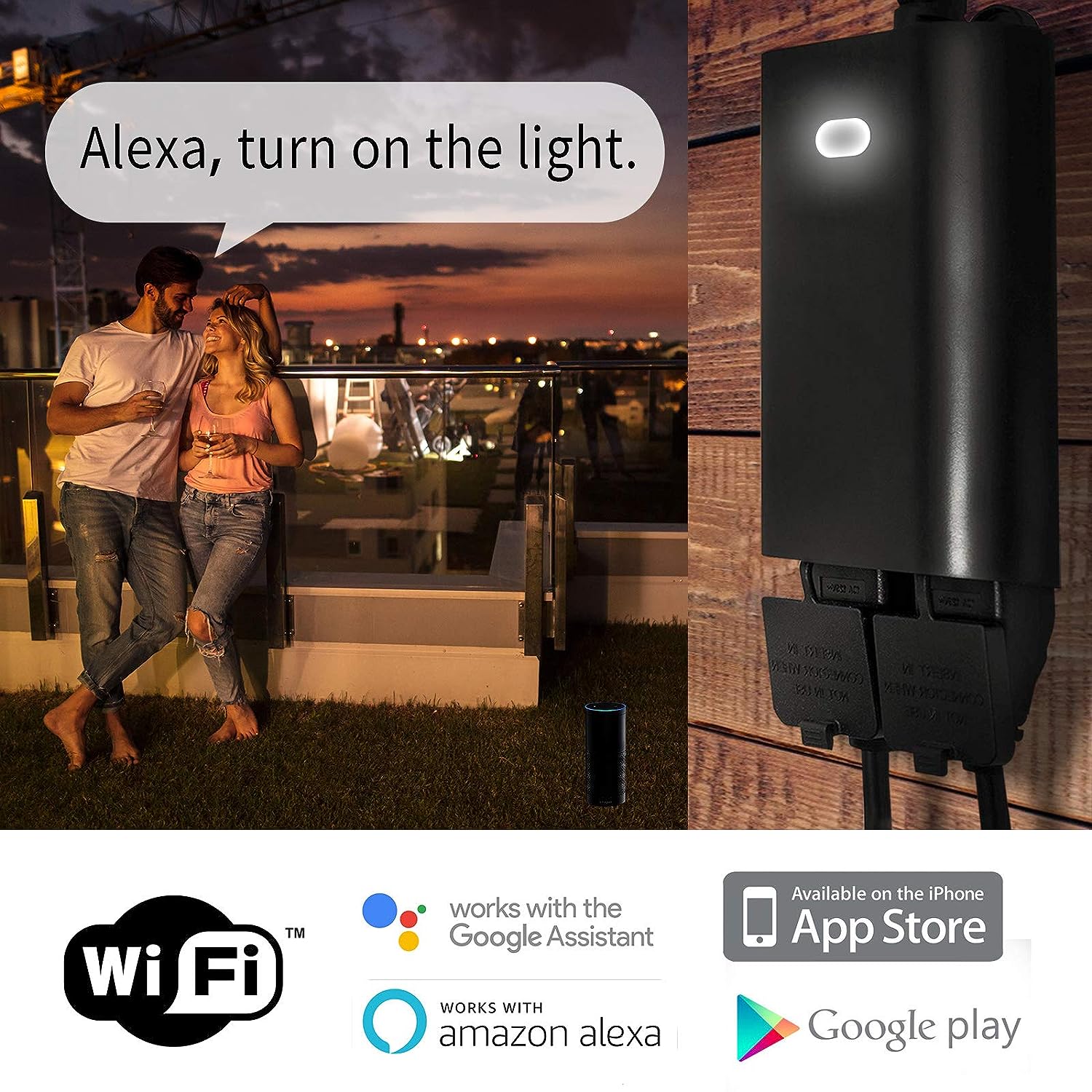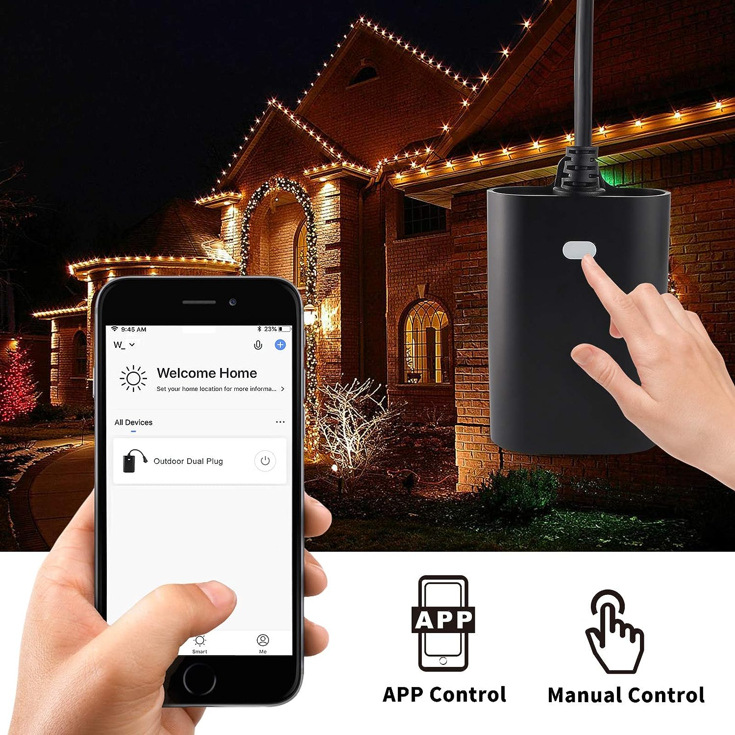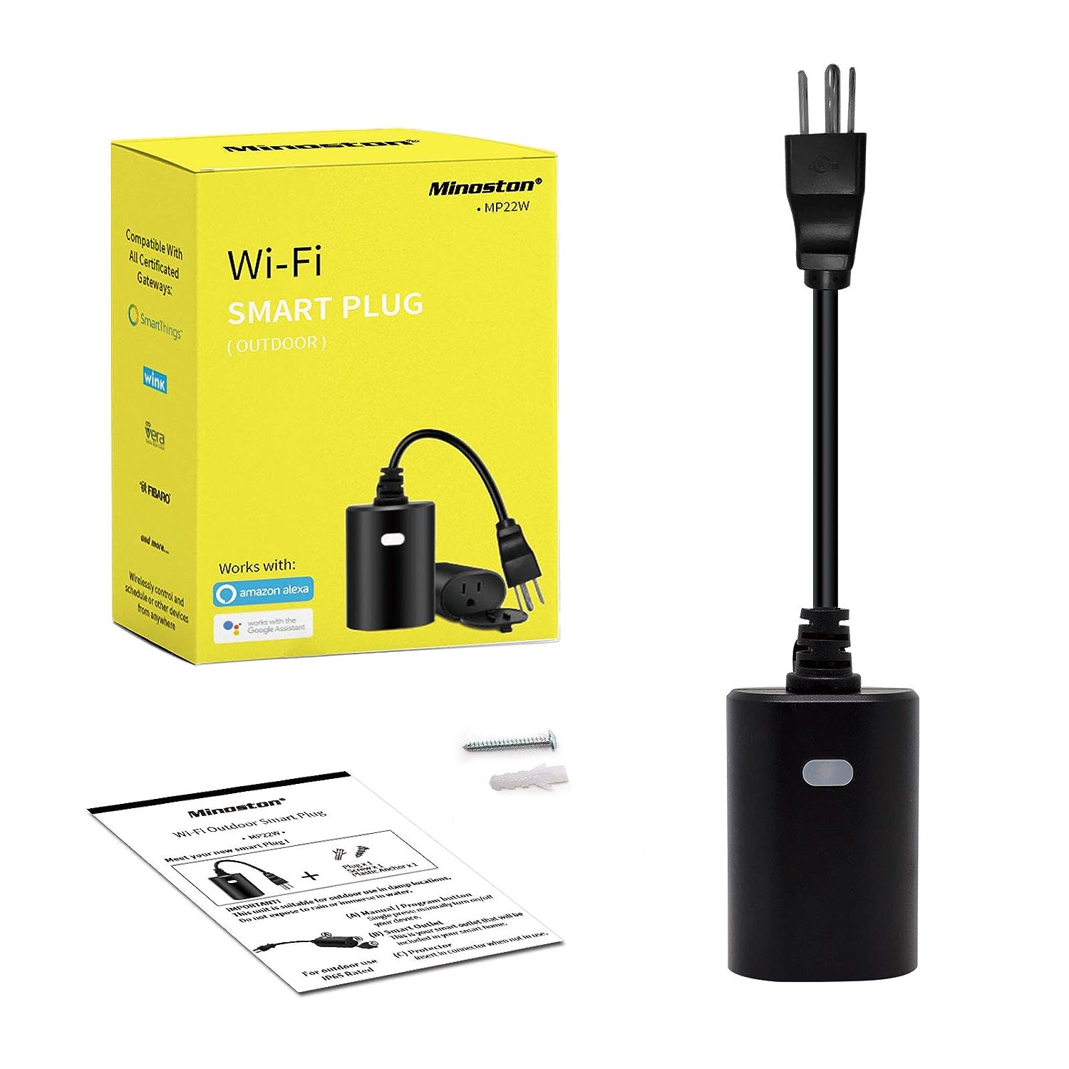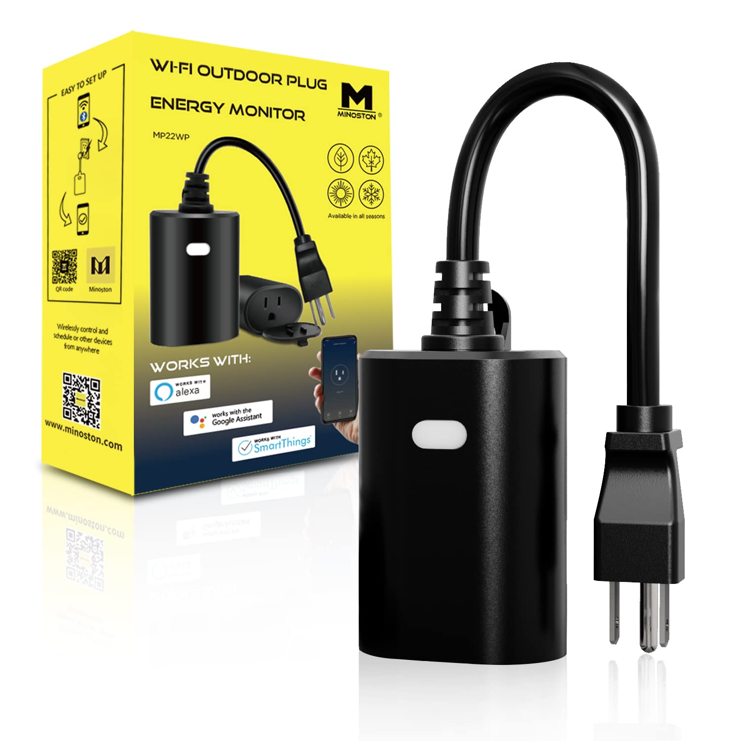 Minoston Outdoor Smart Plug Wi-Fi Plugs Outlet with 2 Individual Control Sockets, Weather-Resistance, Work with Alexa, Google Home, 125V, 2.4 GHz Wireless Frequency, No Hub Required(MP24W)