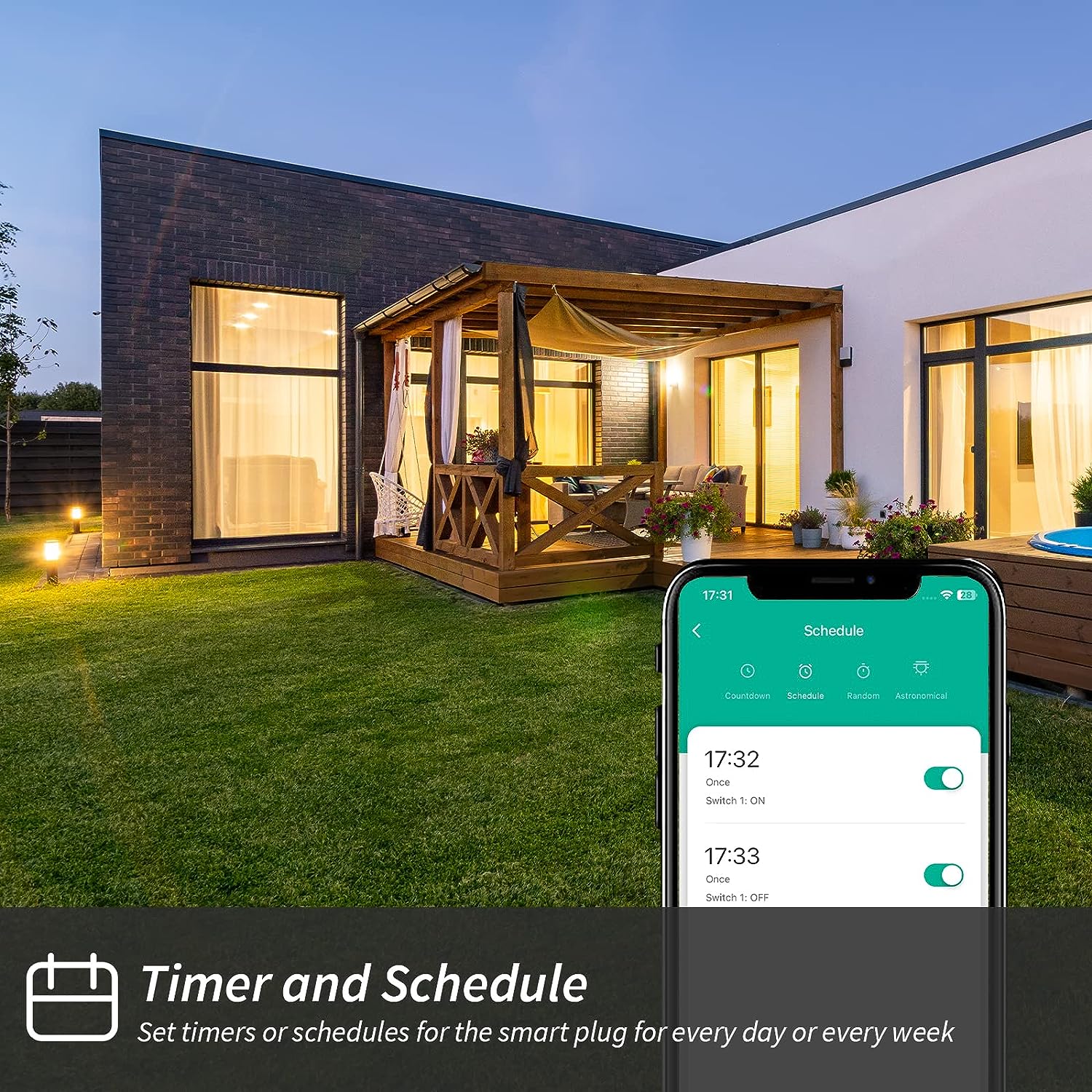 • Timer Schedule Setting: Set daily recurring schedules or countdown timer through the app to turn your devices on or off automatically. This outdoor smart plug works with Smart Life, Tuya Smart and Minoston APP.