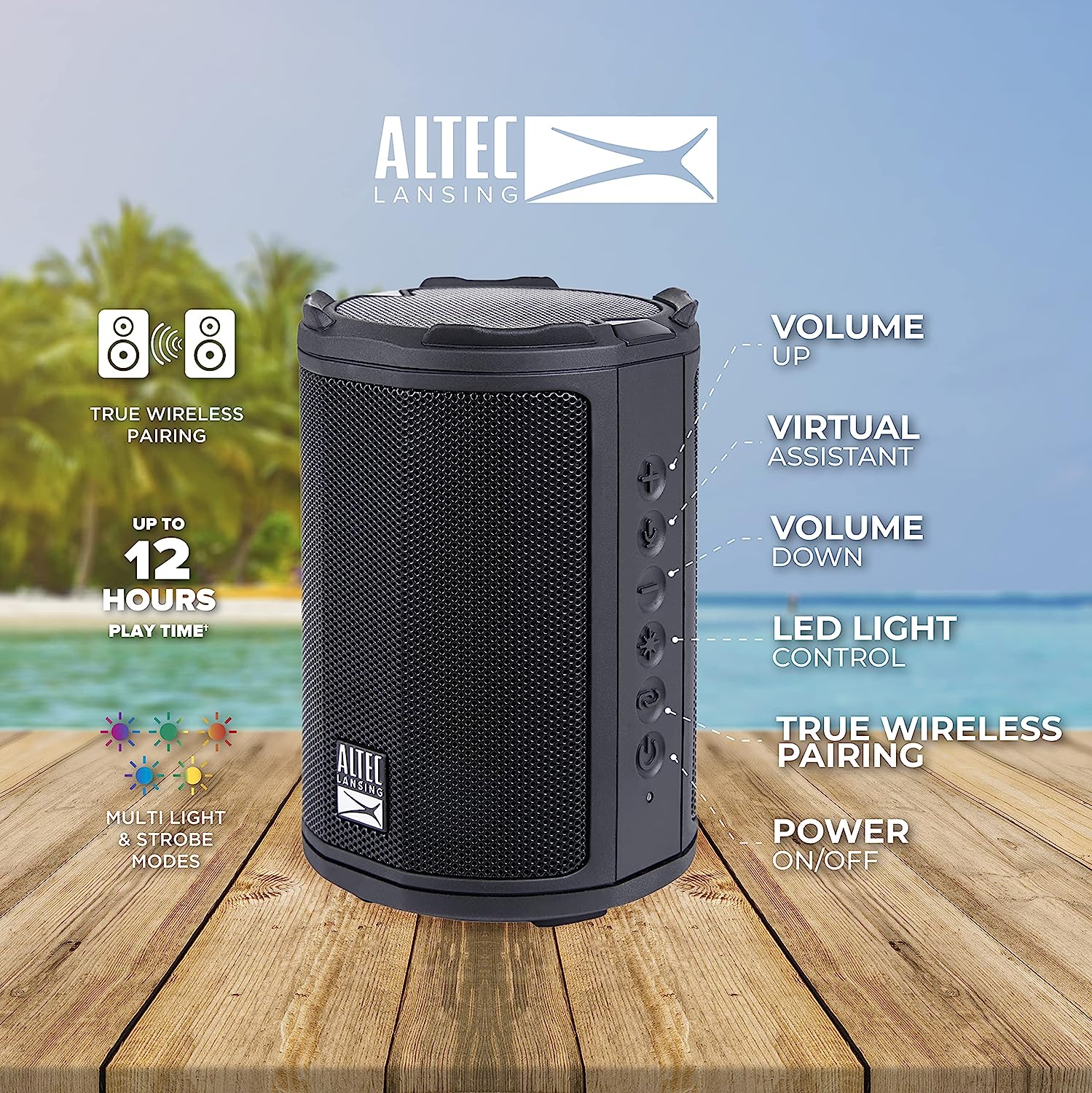 Altec Lansing HydraMotion Wireless Bluetooth Speaker with 360 Degree Sound, Portable IP67 Waterproof for Outdoors, Shockproof, Snowproof, Everything Proof, 12 Hour Playtime (Black)