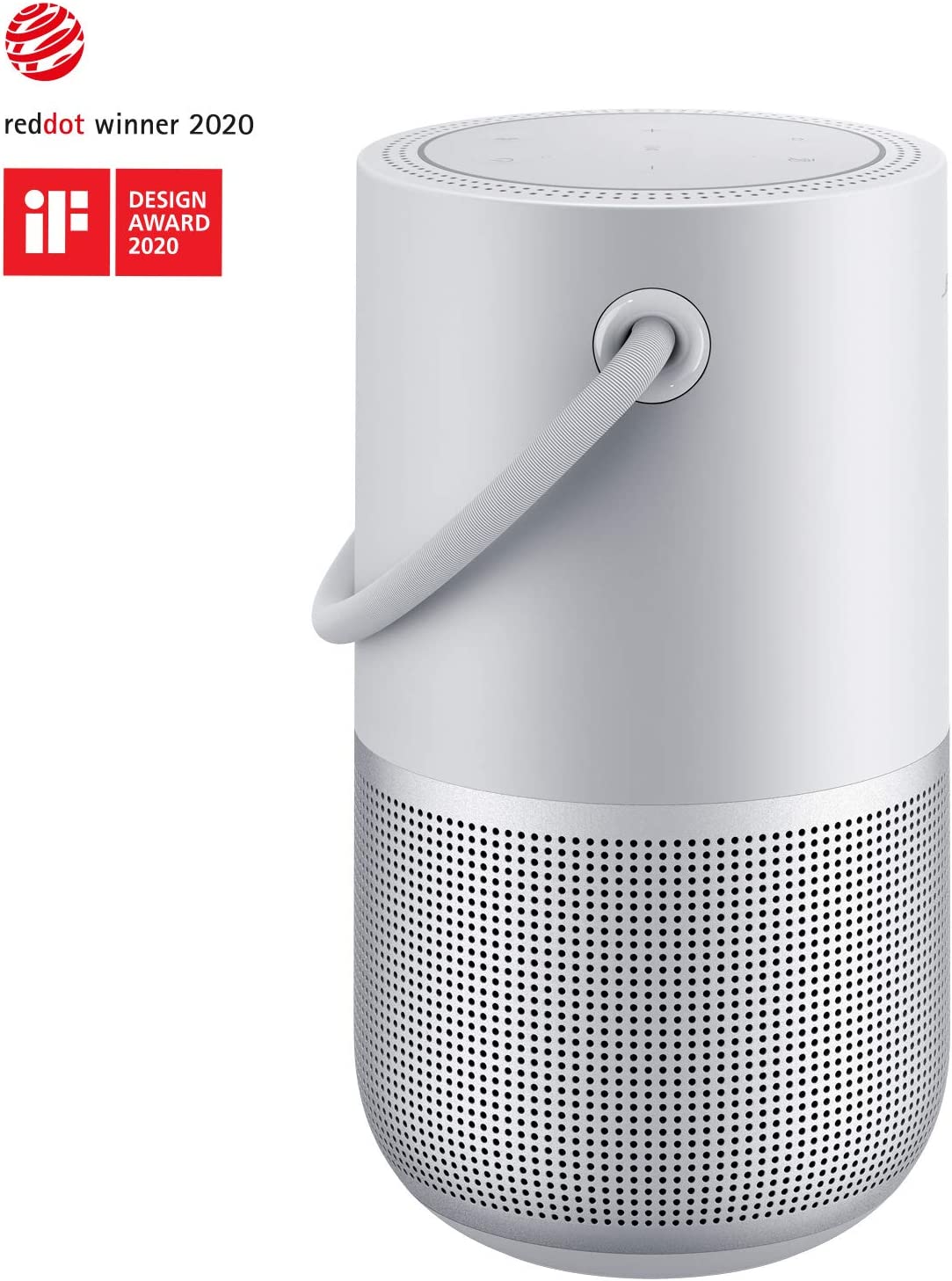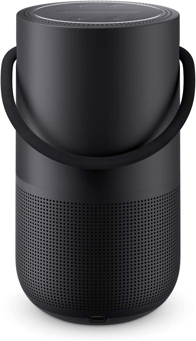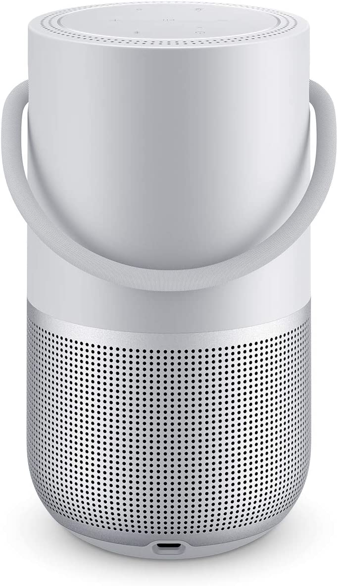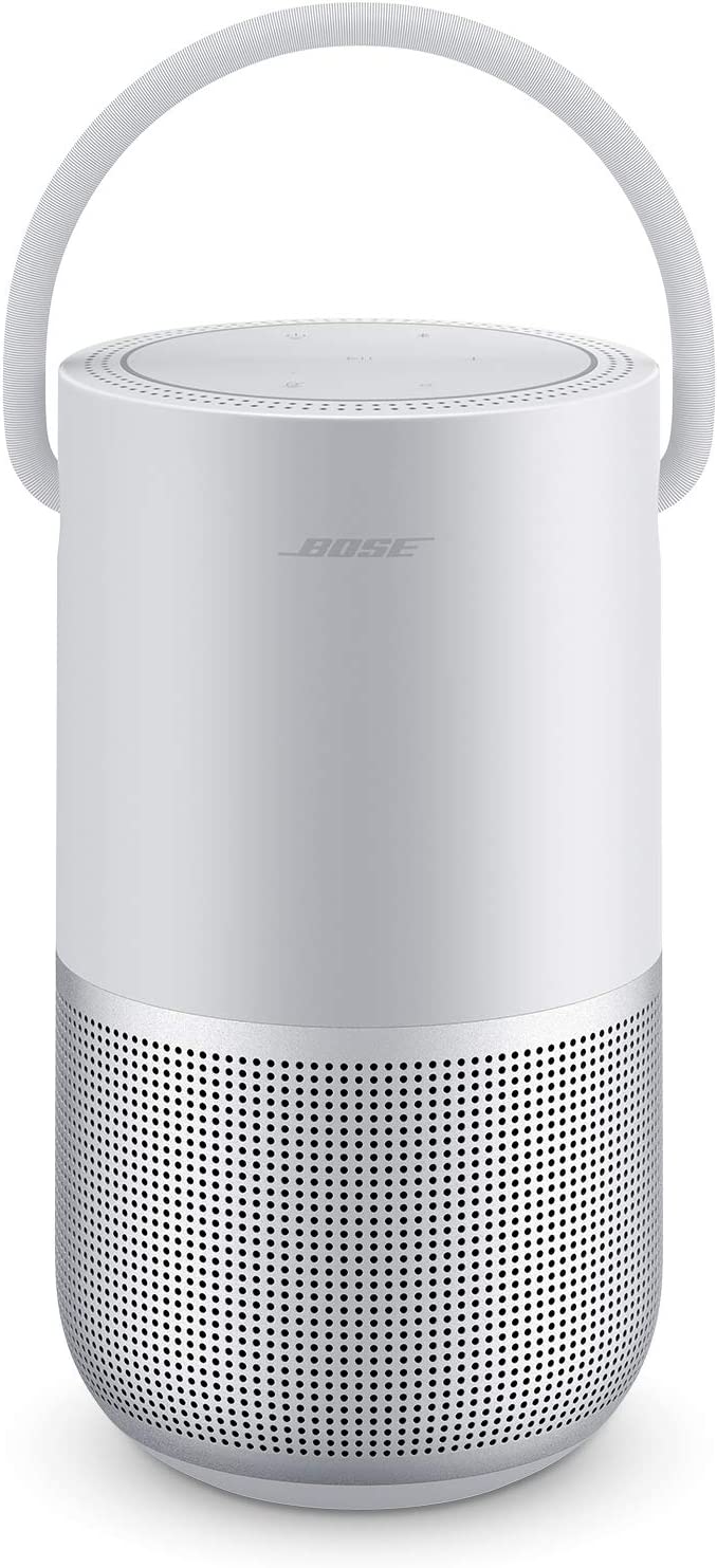 The Bose Portable Smart Speaker is our most versatile smart speaker. It’s a home speaker, a portable speaker, and a voice control speaker, all in one. Around the house, You can move it from room to room — and out of the house, You can take it with you wherever you go. Everywhere your Wi-Fi can reach, you can control the speaker with your voice and use it as an Amazon Alexa speaker or your Google assistant speaker. You’ll have access to all the popular music, internet radio stations, podcasts, and more from Amazon music, Spotify, Pandora, and more. Outside Wi-Fi range, you can control the speaker with your mobile phone or tablet via Bluetooth and listen to anything your device can play. The portable home speaker is designed to distribute audio in every direction at the same time, so whether you put it in the middle of the party or the corner of the room, The sound will come from all around you. And each part of the speaker Works in total harmony to deliver deep, clear, lifelike sound, no matter where you play it, no matter what you listen to. The Bose portable smart speaker is also engineered with multi-room functionality. That means you can connect it to any other Bose smart speaker or sound bar you’ve got (like the Bose Home speaker 500) for a seamless audio experience throughout your home. Listen to different songs in different rooms, or one song in every room at the same time — and get everybody singing along. Available in triple black or luxe Silver. Included: Bose portable smart speaker, power cord.