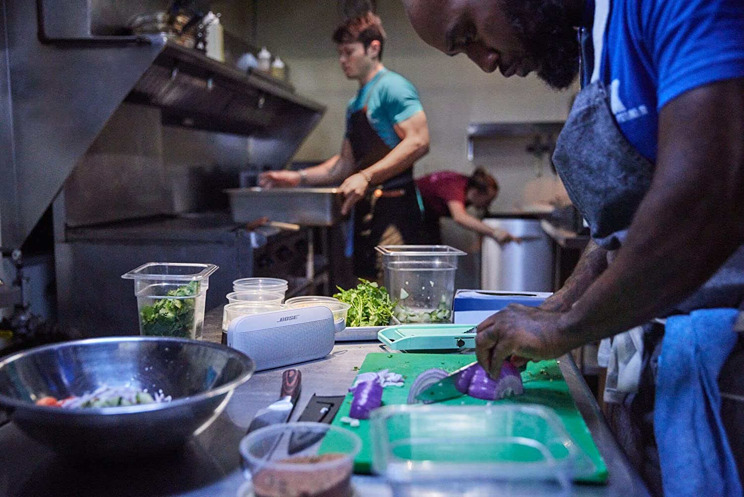 The SoundLink Flex Bluetooth speaker does more than just immerse you – it provides a strong connection to your music. With crisp audio free of distortions, you’ll hear every instrument on the track and nuance in the vocals. It doesn’t matter how the portable speaker is positioned: PositionIQ technology detects its orientation and ensures the best sound. The portable Bluetooth speaker is packed with exclusive technologies. The transducer offers clear sound and deep bass. Its digital signal processing technologies, proprietary code, and custom algorithms work together for ideal sound quality wherever you are. Really, wherever, since the SoundLink Flex is an IP67 waterproof speaker. Its exterior can handle falls, the coat won’t peel or flake, and it resists corrosion and UV light. It’s also easy to hold or store, and you can secure the outdoor speaker with its utility loop. Rigorously tested to meet an IP67 rating, the SoundLink Flex is waterproof. It floats, too, so it won’t sink if it falls off your boat. For added protection from dust and debris, the Bluetooth speaker is crafted and sealed with waterproof materials. Plus, to ensure it can travel with you, Bose subjected the outdoor speaker to water, temperature, and drop tests. These proved that it’s durable enough for anything. And its battery offers up to 12 hours of unplugged play time. The Bose Connect app lets you customize the portable speaker settings, update software, and more. If your phone isn’t nearby, press and hold a button on the IP67 waterproof speaker to access your phone’s Siri or Google Assistant. A built-in microphone means you can also take and make phone calls through the SoundLink Flex. It also connects to other Bluetooth devices within 30 feet for even bigger sound.