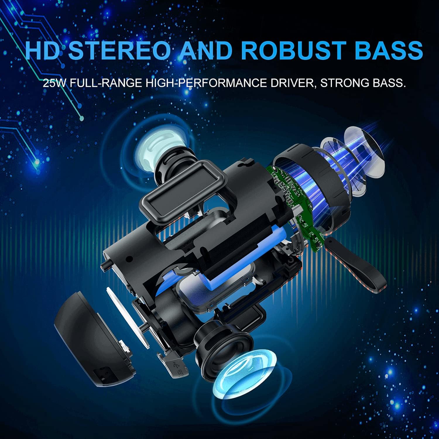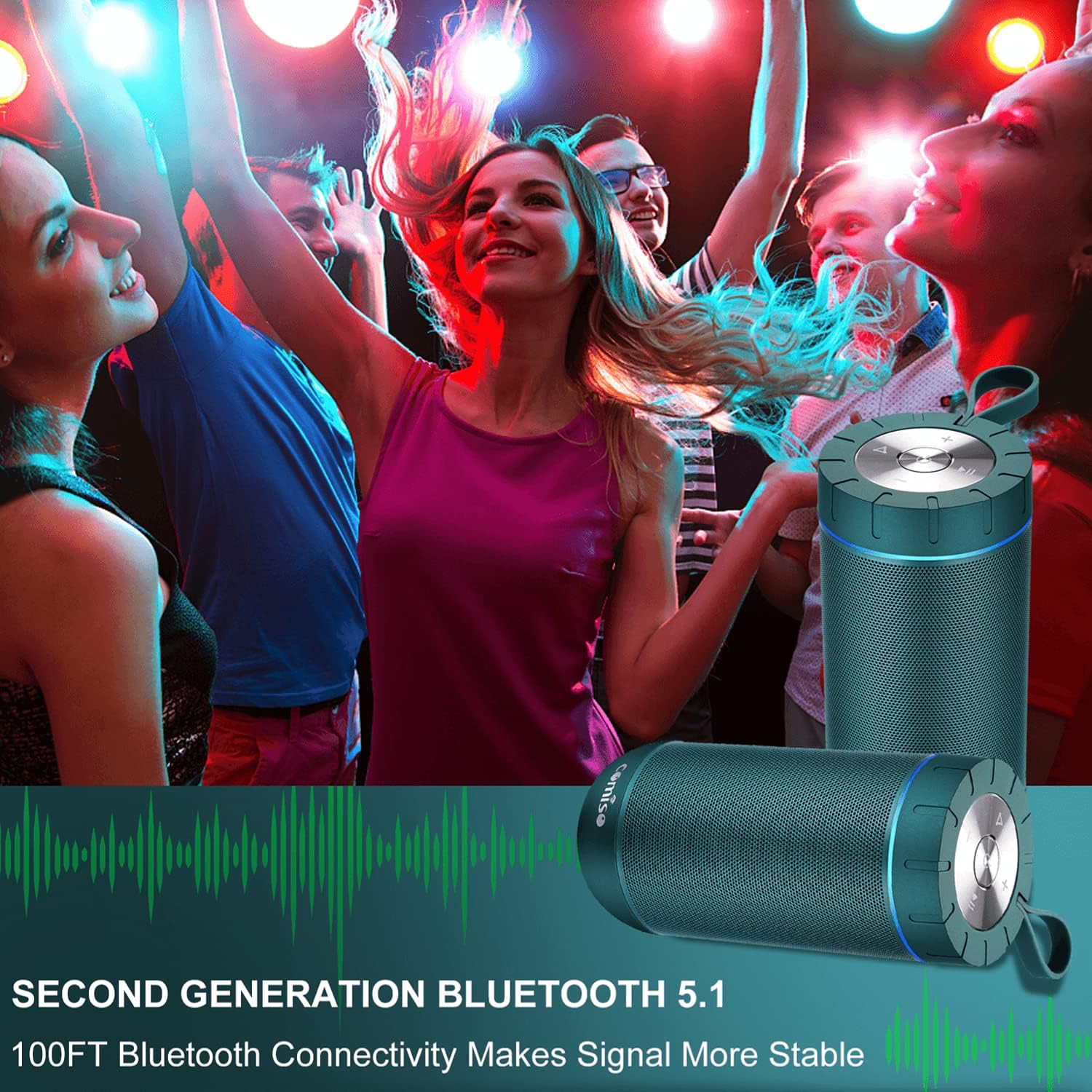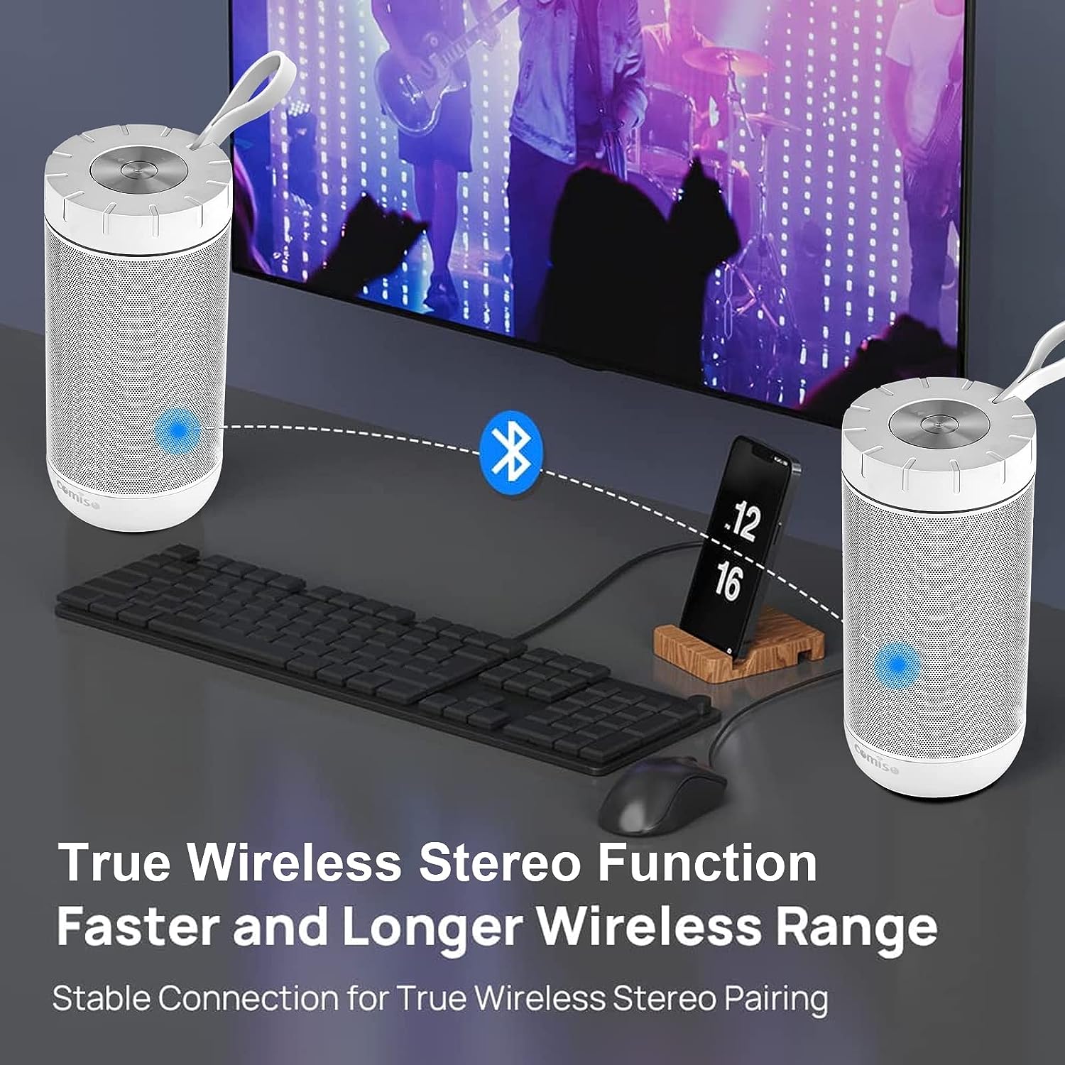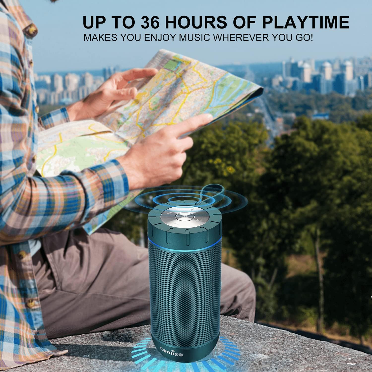 • [True Wireless Stereo Function]: Thanks to True Wireless Stereo function, pair any two COMISO X26L speakers, you can achieve true wireless Bluetooth playing for left and right channels separated of two X26L waterproof blutooth speakers. Just control the True Wireless Stereo master device, then audio can be played in sync on both devices with double enhanced stereo sound