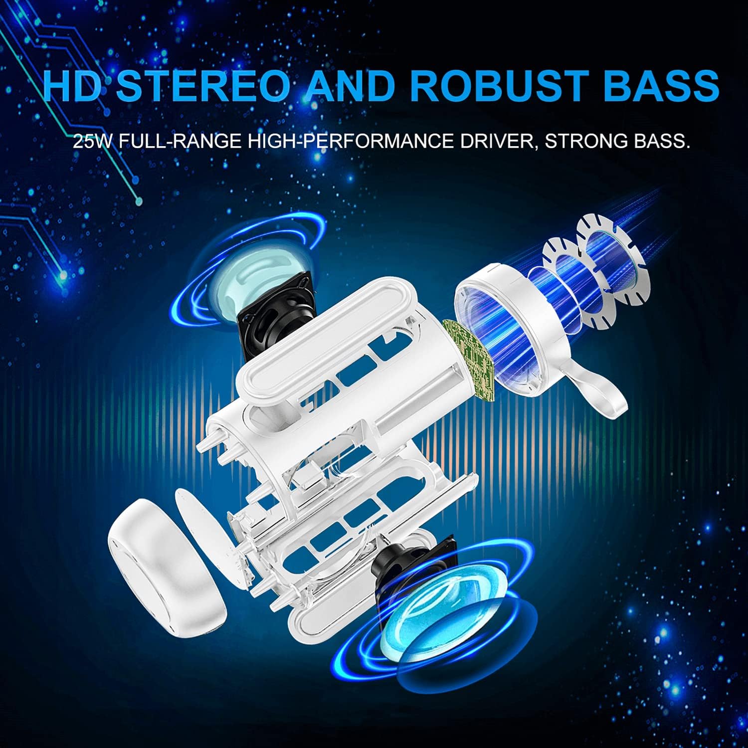 • [Louder Volume More Bass]: Distortion-free at maximum volume; room filling sound, perfect for home, dorm room, kitchen, bathroom, car, parties; streaming music or internet radio services such as Pandora and Spotify from your Smartphone, iPhone, or audio device