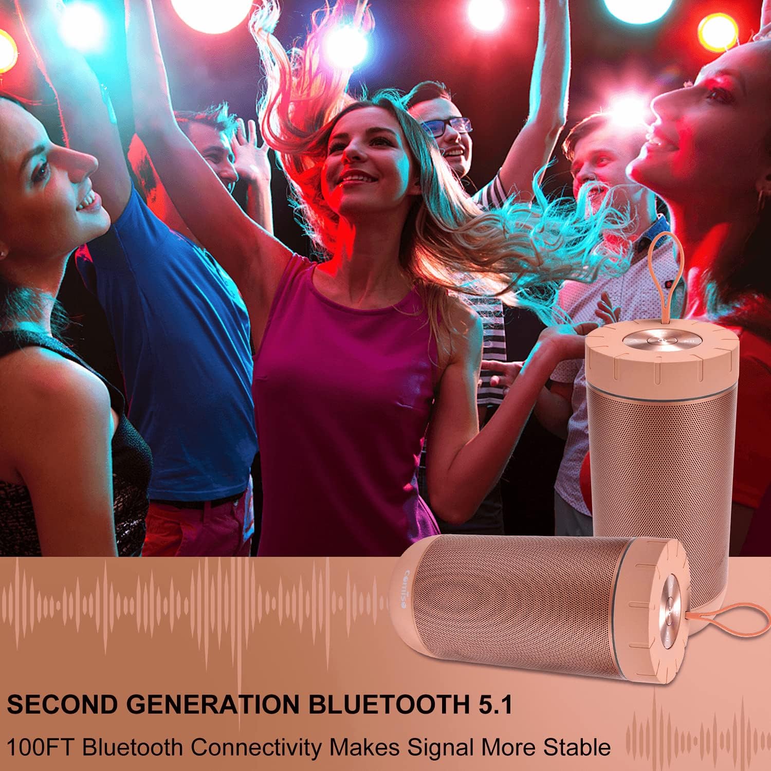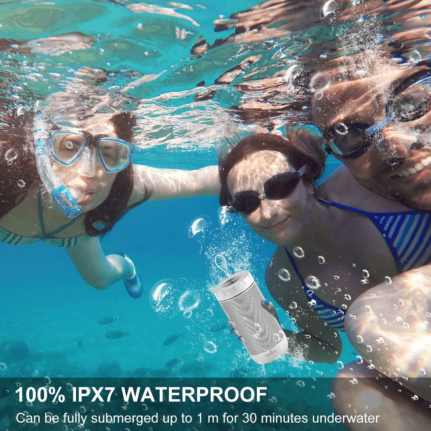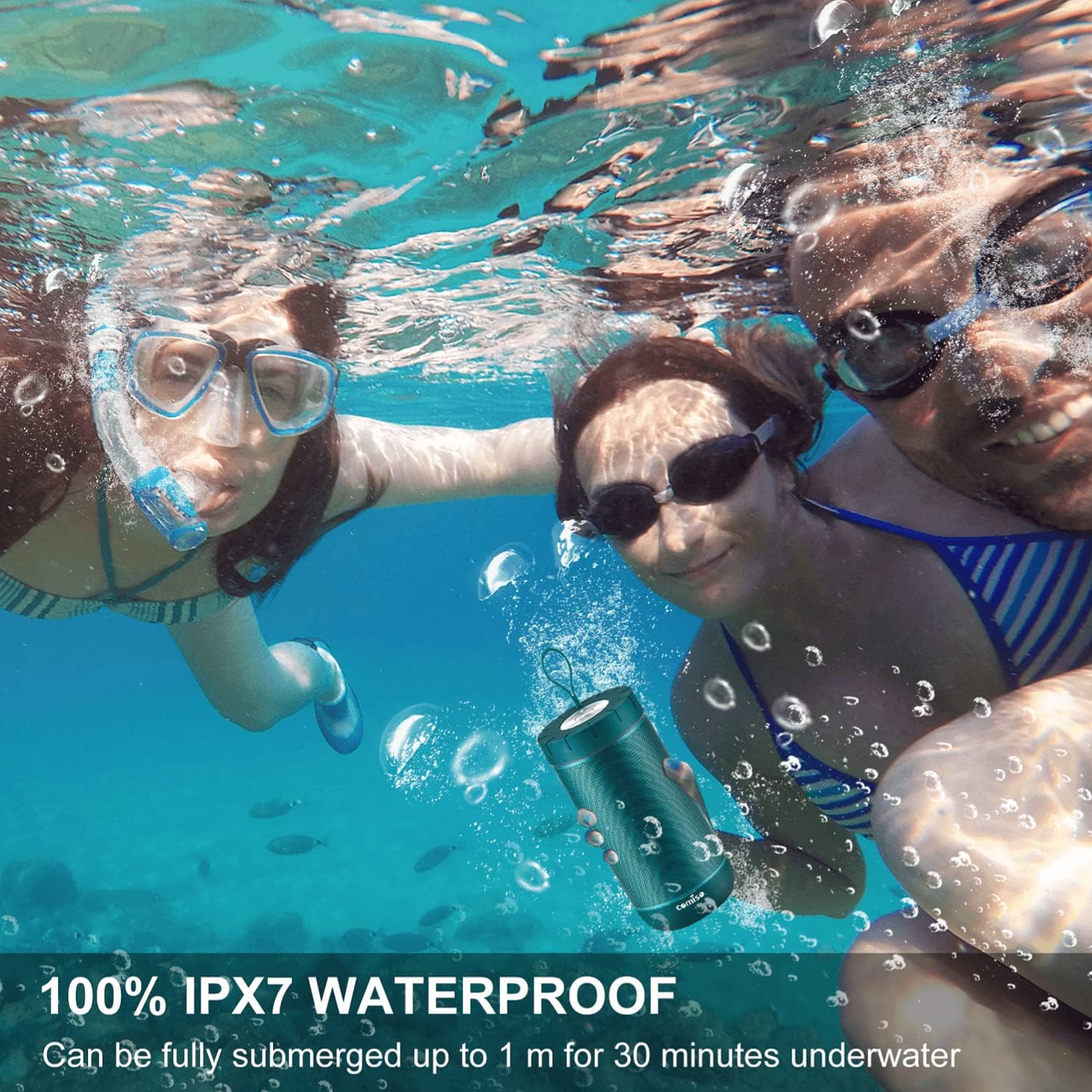 • [IPX7 Waterproof]: waterproof Bluetooth speaker can be fully submerged up to 1 m for 30 minutes underwater.Washed under running tap without worrying. Pool parties? Definitely. Singing in the shower? You bet! Hiking, Biking, Kayaking, Camping, no matter rain day? Cool! This waterproof speaker is perfect for all sorts of outdoor and indoor activities.