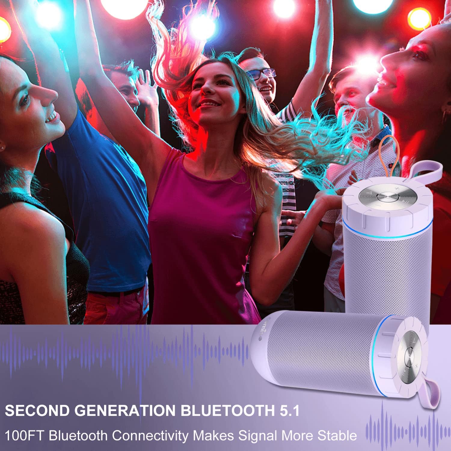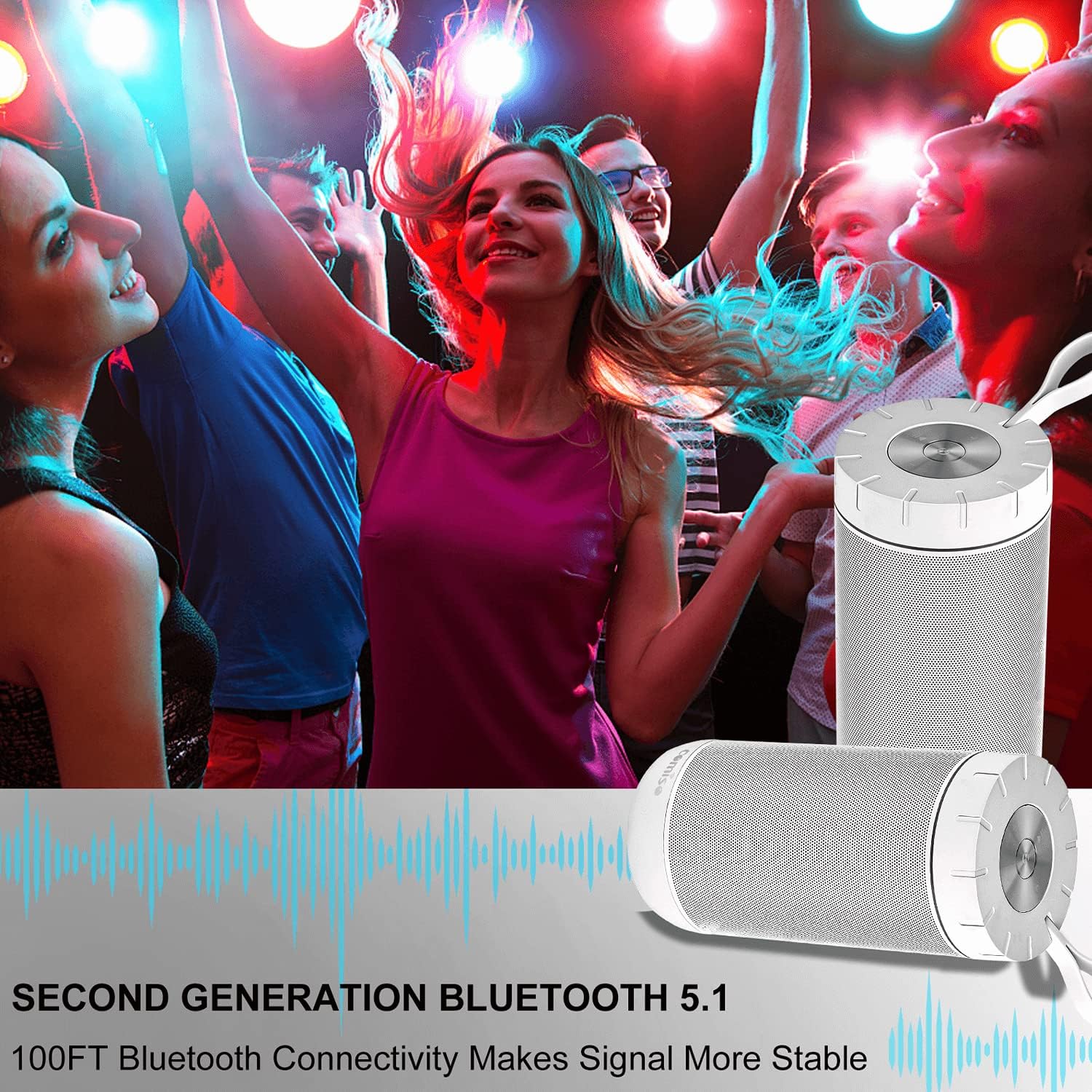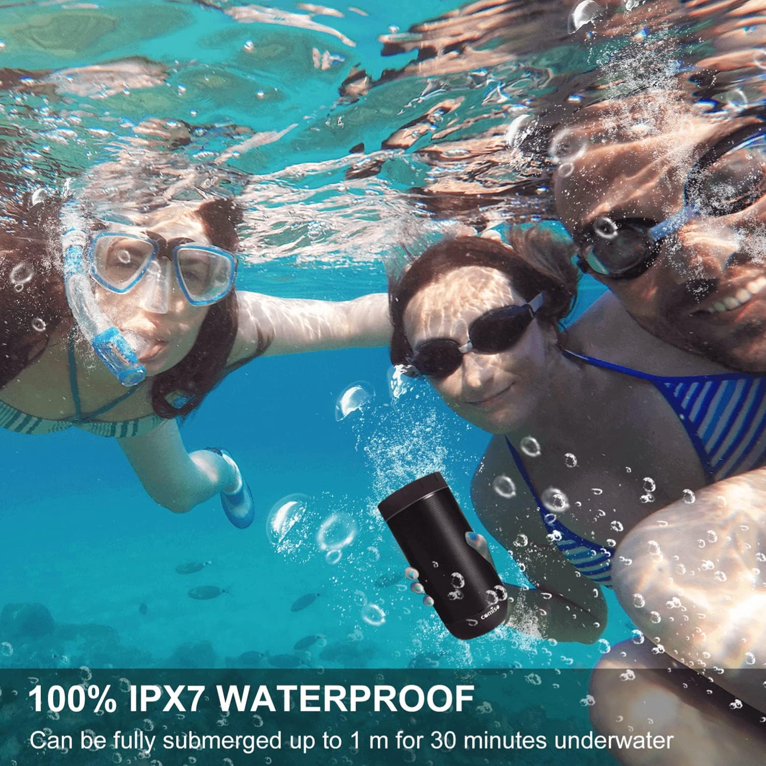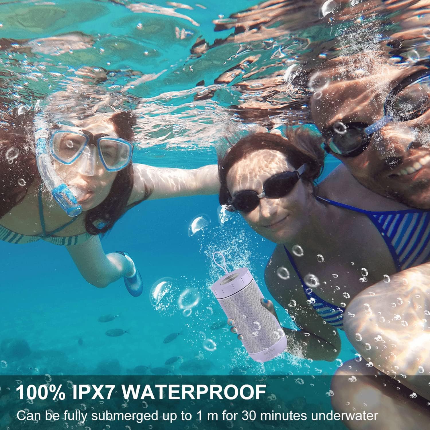 • [IPX7 Waterproof]: waterproof Bluetooth speaker can be fully submerged up to 1 m for 30 minutes underwater.Washed under running tap without worrying. Pool parties? Definitely. Singing in the shower? You bet! Hiking, Biking, Kayaking, Camping, no matter rain day? Cool! This waterproof speaker is perfect for all sorts of outdoor and indoor activities.