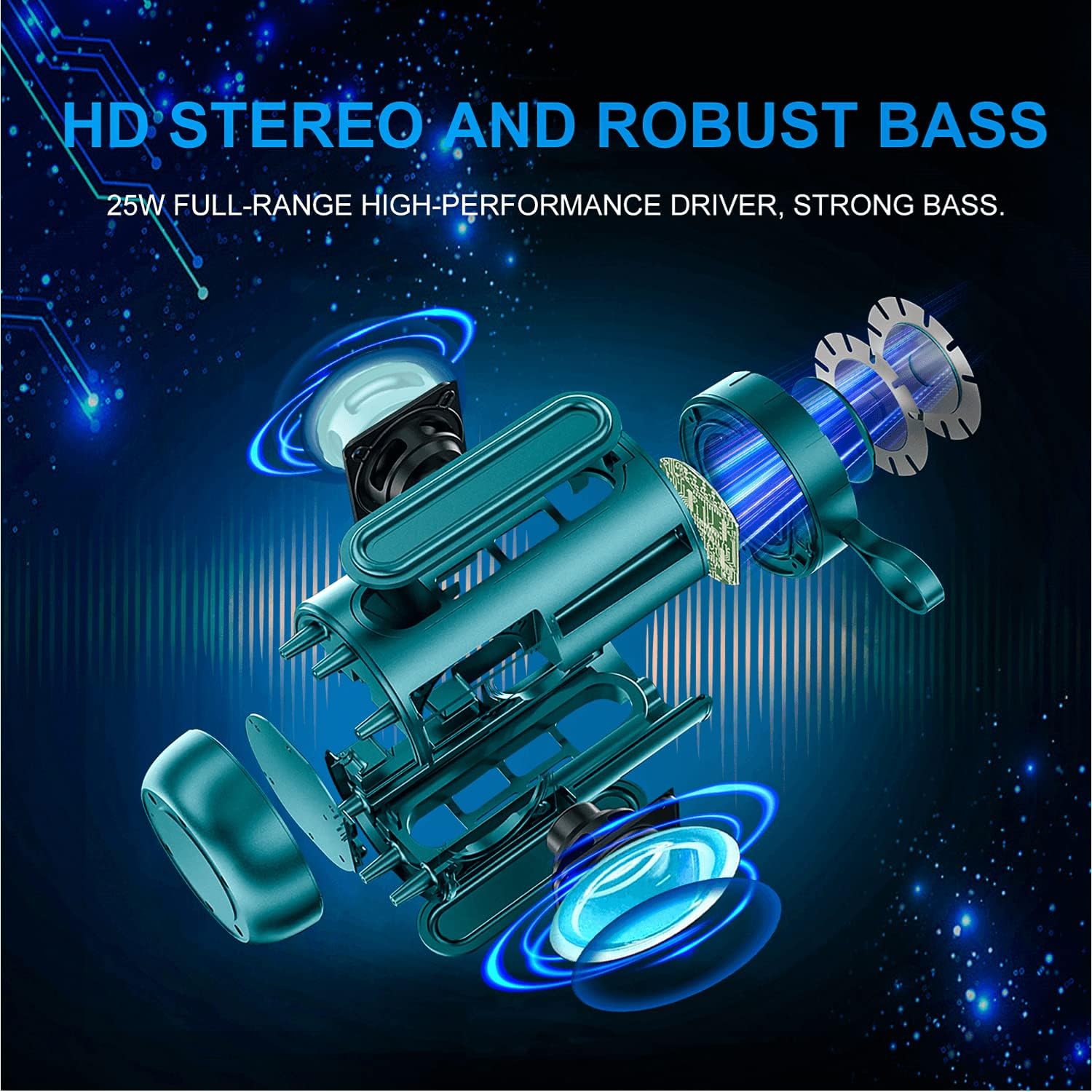 comiso Waterproof Bluetooth Speaker IPX7, 25W Wireless Portable Speakers Loud Sound Strong Bass Stereo Pairing 36 Hours Playtime, Bluetooth 5.0 Built in Mic for Calls (Upgraded X26L) Teal Green