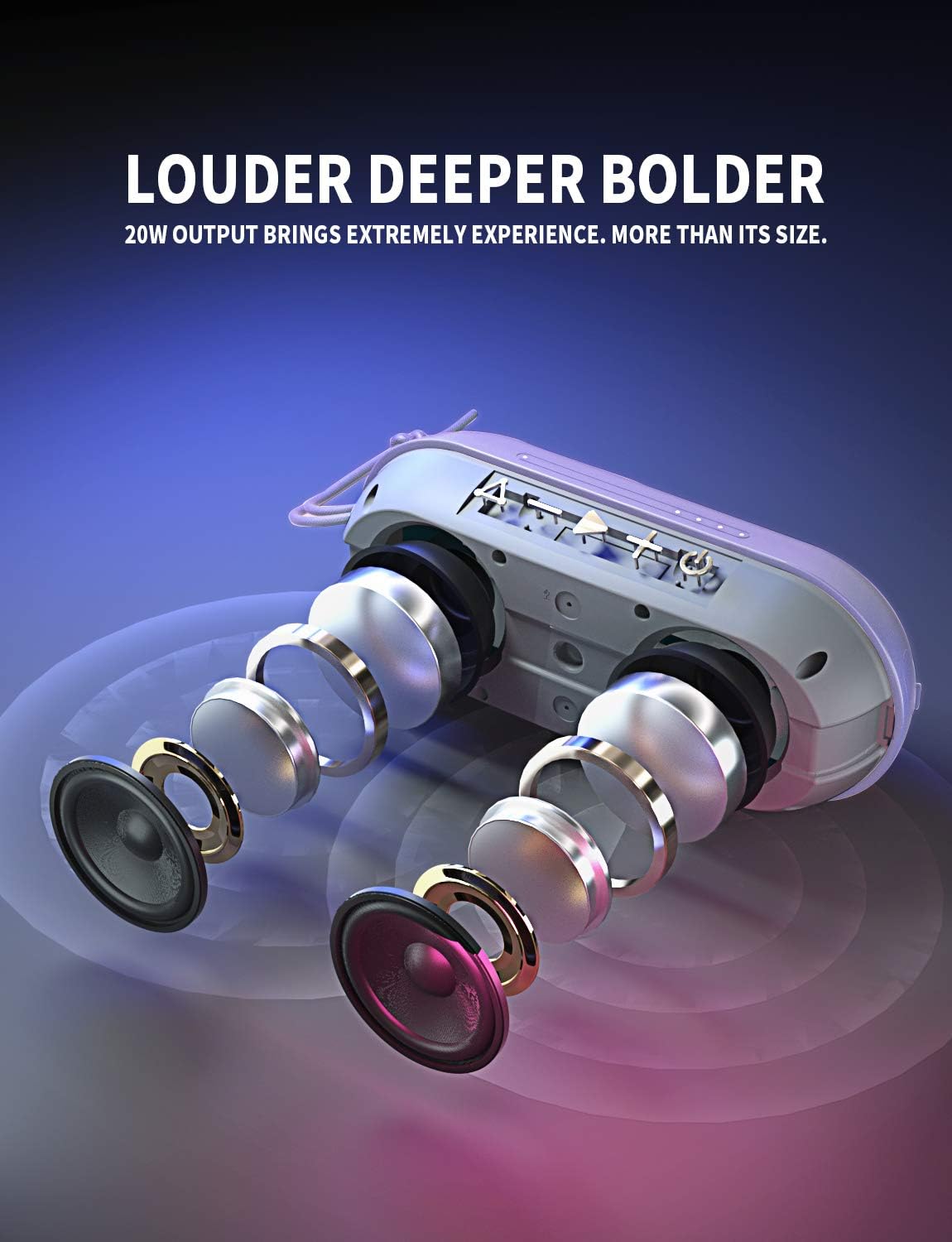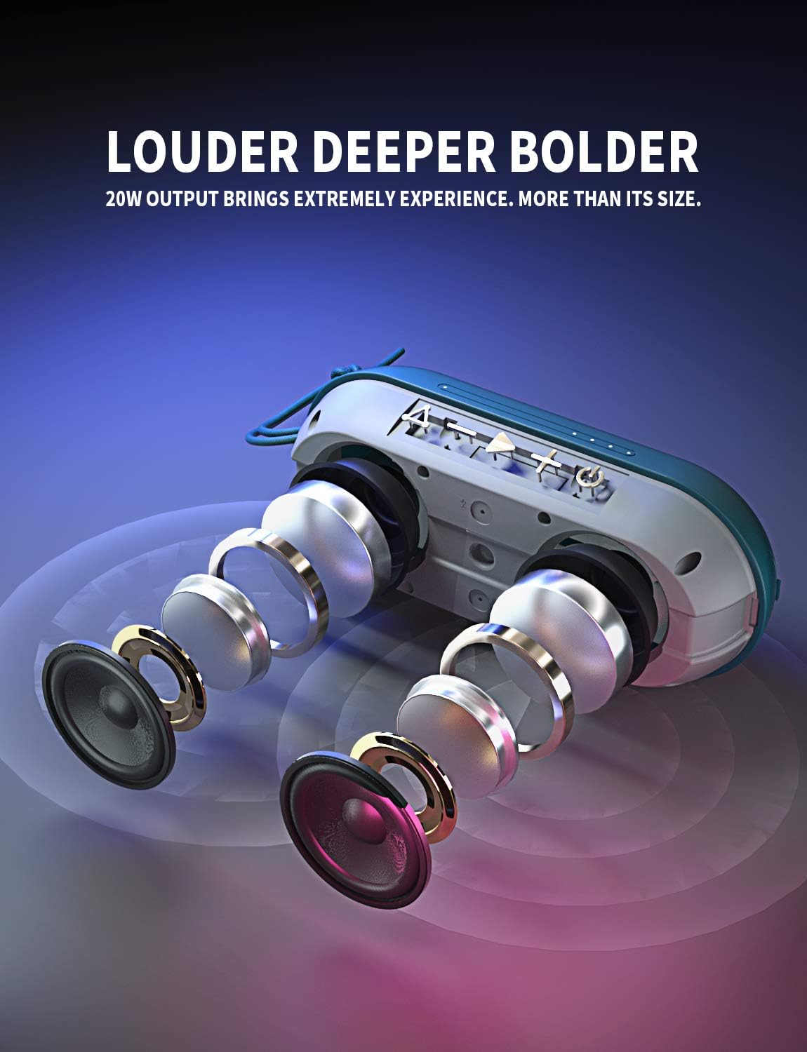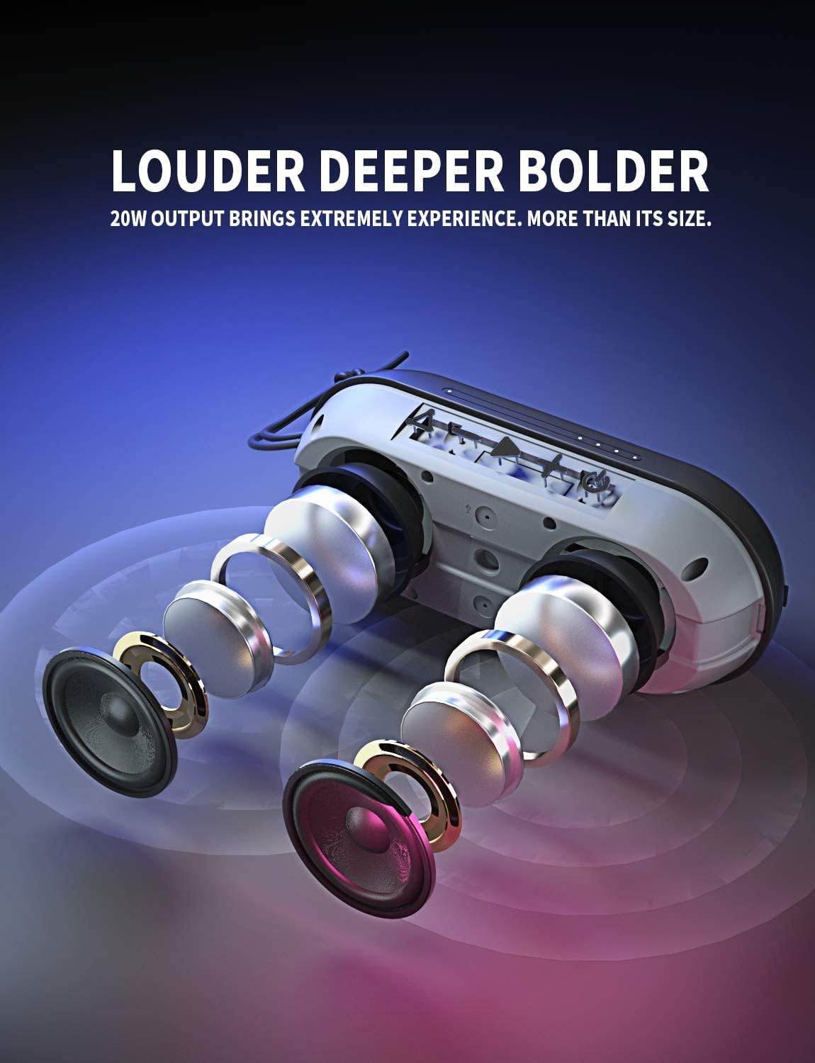 • [Powerful Battery Life up to 24 Hours & Bluetooth 5.0 100ft] Built-in 4400mAh rechargeable Li-ion battery supports up to 24 hours of playtime play at 50% volume under a full charge. Recharge in 4-5 hours with the included USB type C cable. Newest Bluetooth 5.0 version brings you faster and stabler signal transmission in 2X speed than 4.2 version. Connection range about 100ft.