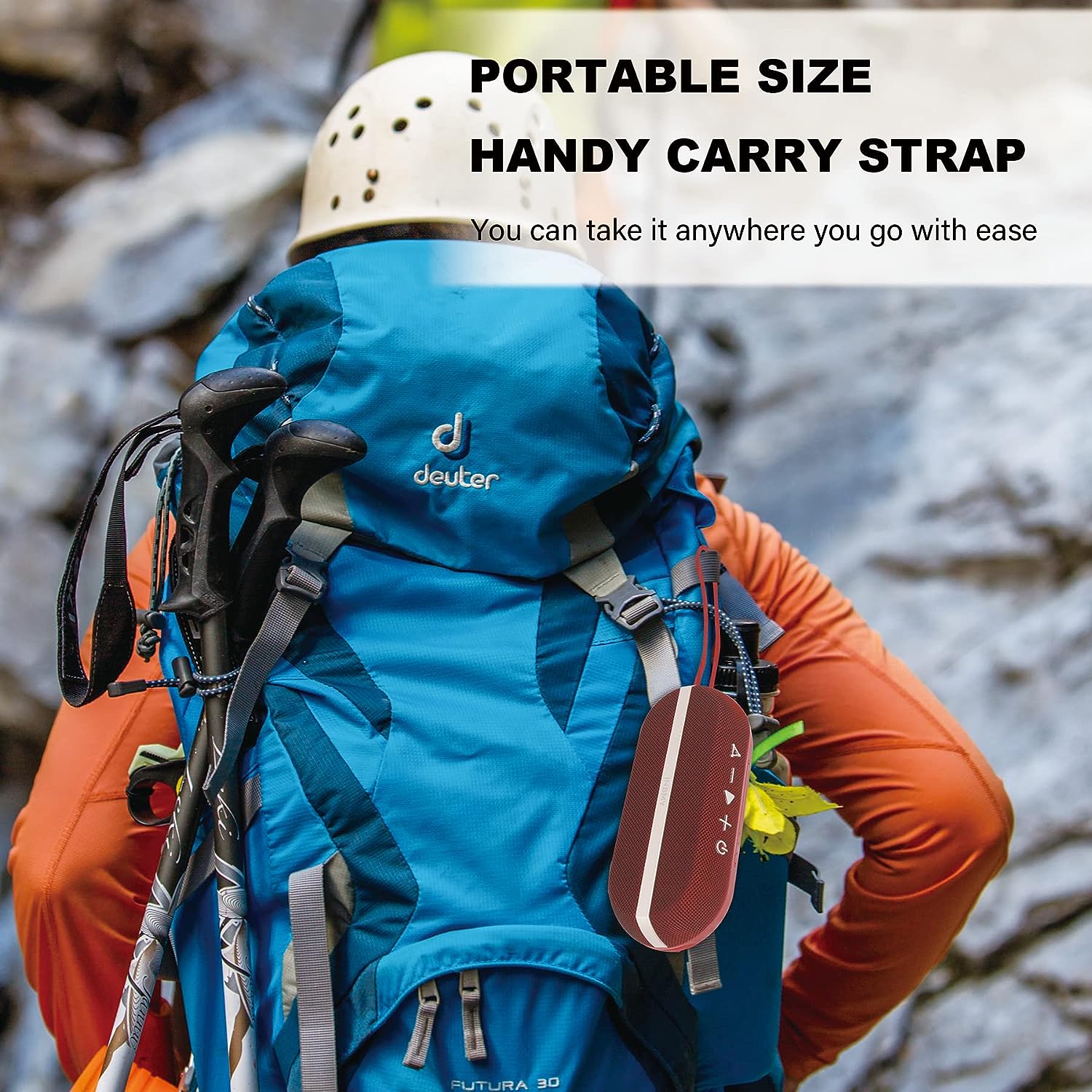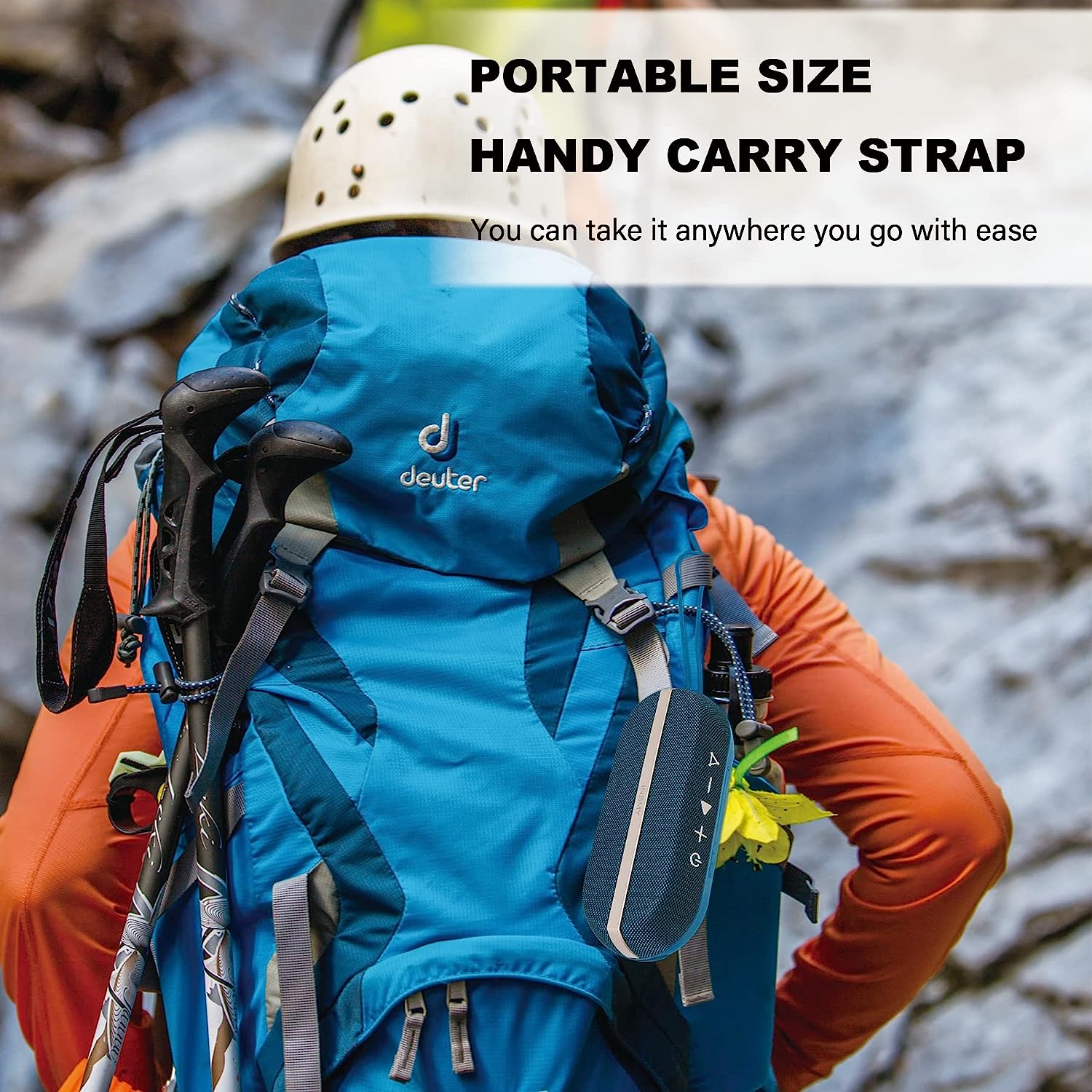 • [Ultra-Portable & Rugged] Take this outdoor wireless speaker to every challenge you took, no fear of all kinds of environment. Easy to store in your backpack hand back and attach on the bike or motorcycle with lanyard. Built-in Mic hands-free function answers an incoming call without touching your phone.