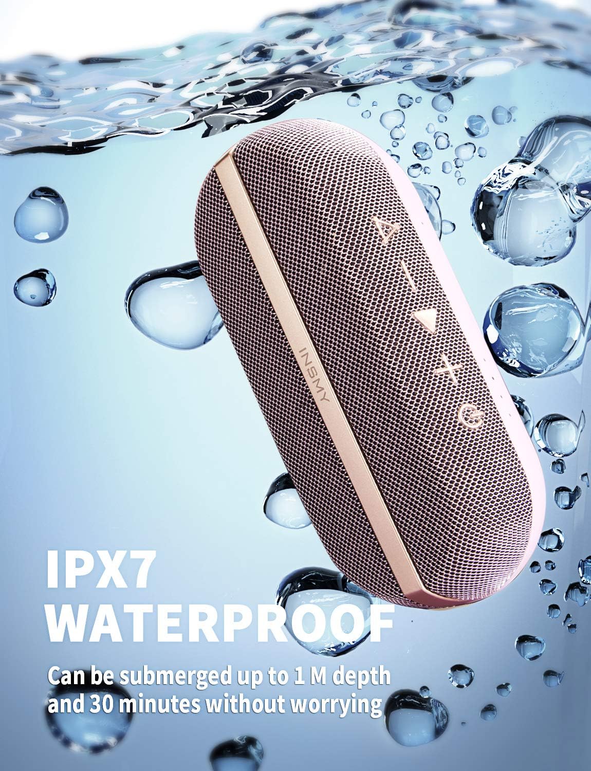 • [IPX7 Waterproof Floating on Water] INSMY waterproof Bluetooth speaker can be fully submerged up to 1 m for 30 minutes underwater.Washed under running tap without worrying. Pool parties? Definitely. Singing in the shower? You bet! Hiking, Biking, Kayaking, Camping, no matter rain day? Cool! This waterproof speaker is perfect for all sorts of outdoor and indoor activities.
