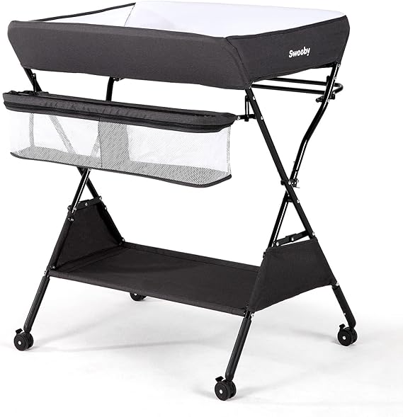 Sweeby Infant Changing Table with Changing Pad, Changing Table Portable Pad Nursery Furniture Baby Changing Station, Dark