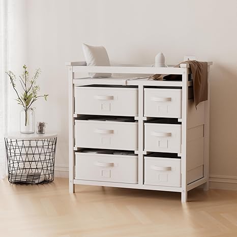 YUFU Baby Changing Table, Diaper Changing Station with 6 Storage Drawers and Changing Pad, Changing Table Dresser, White