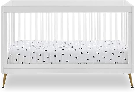 Delta Children Sloane 4-in-1 Acrylic Convertible Crib - Includes Conversion Rails, Bianca White w/Melted Bronze