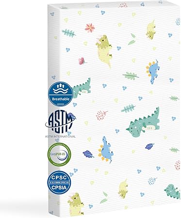 Pack and Play Mattress 38"x26" Portable Breathable Pack N Play Mattress for Baby and Toddler - Waterproof Washable Cartoon Cover with Dual Sided Firm Support & Soft Memory Foam