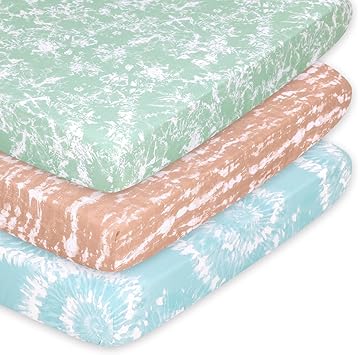 The Peanutshell Pack n Play Sheets, Fitted Mini Crib Sheets, Playard Sheets, Playpen, Portable Crib Bedding for Boy or Girl, Boho Tie Dye 3 Pack
