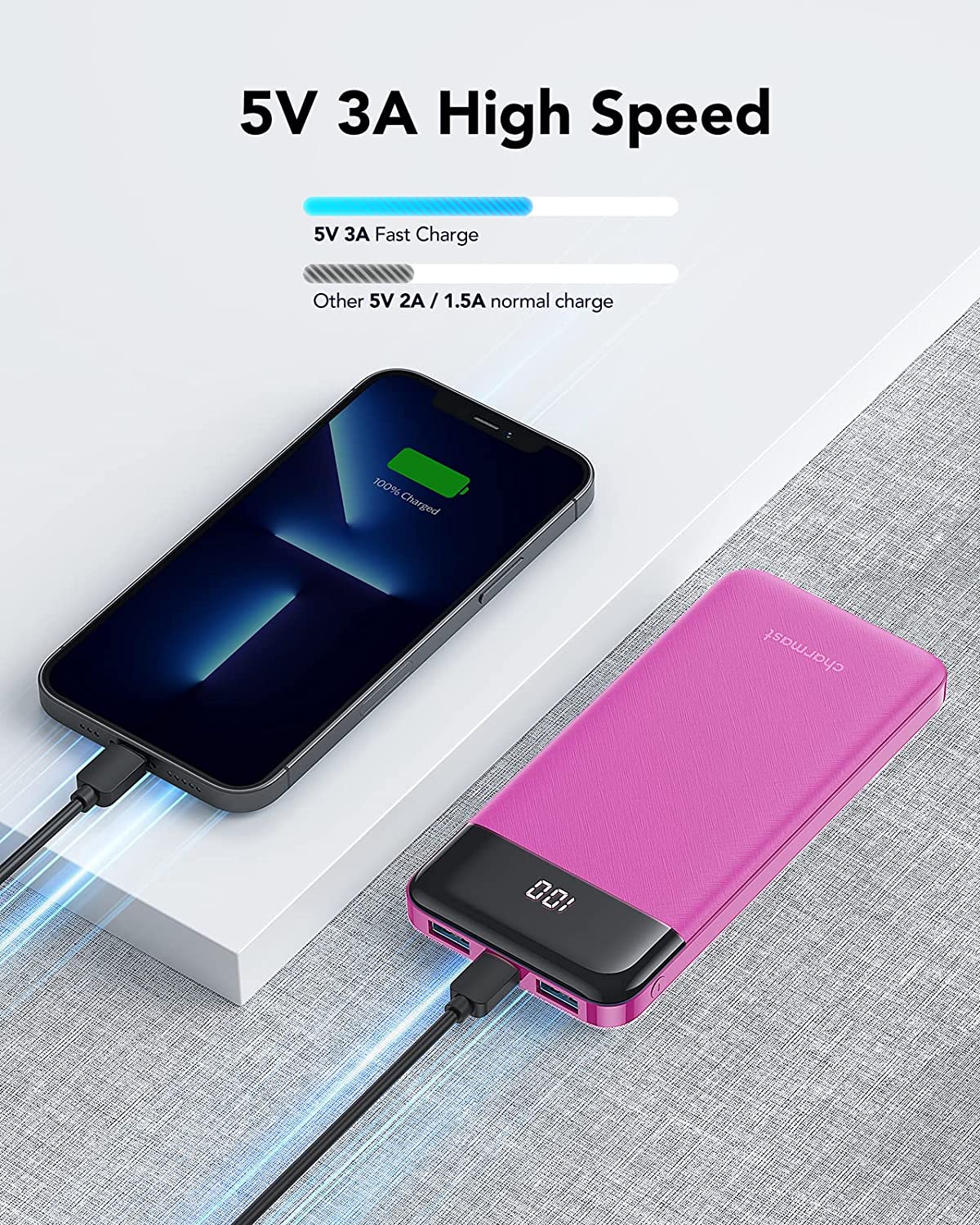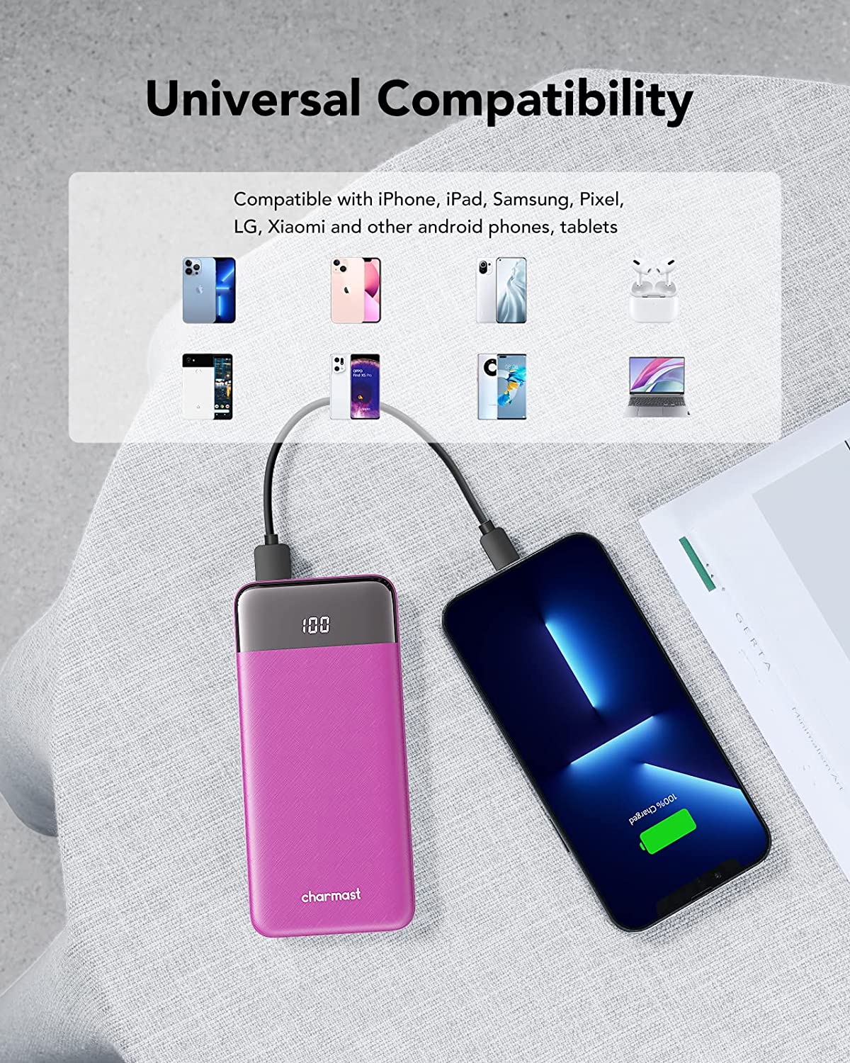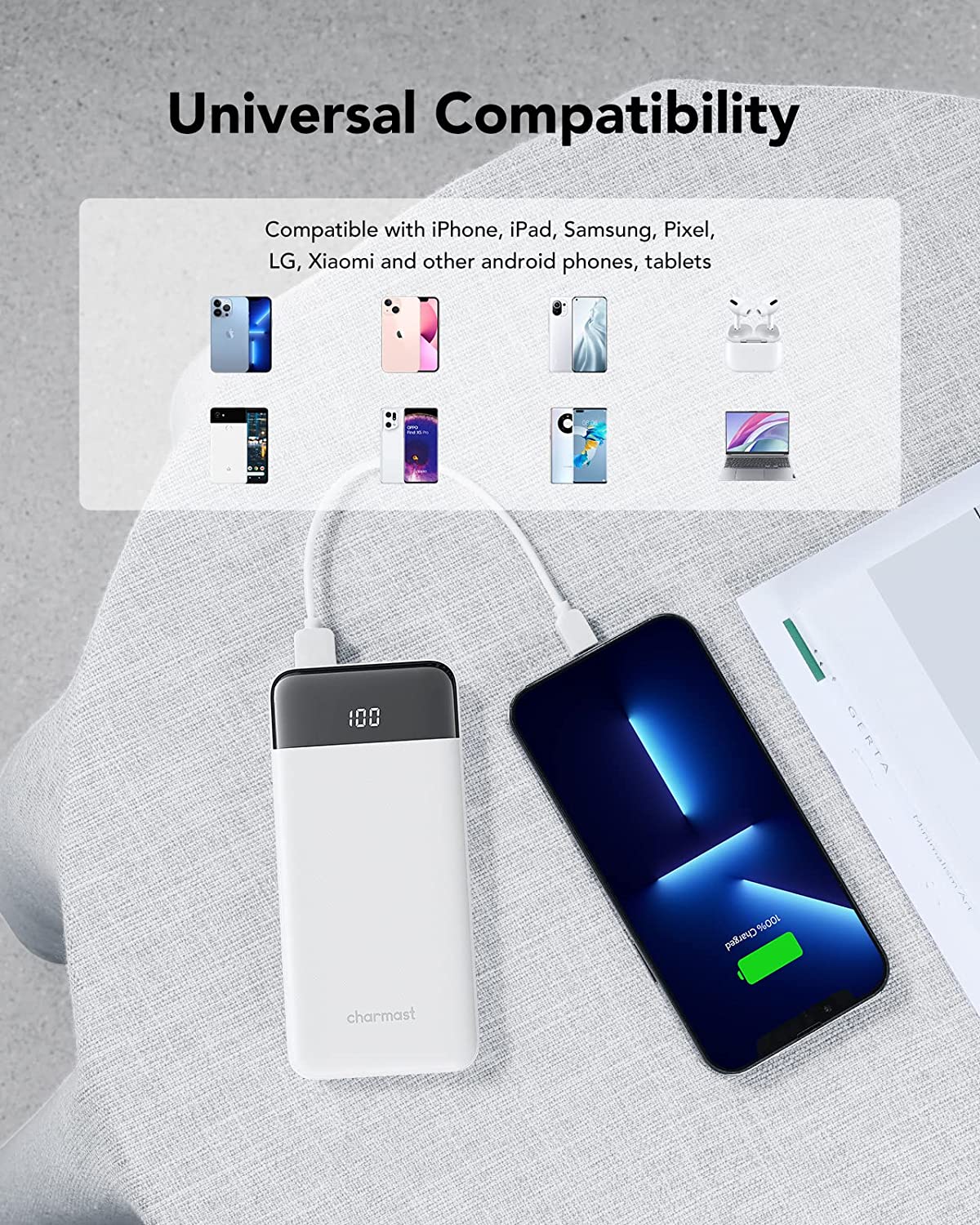 Charmast Portable Charger, USB C Battery Pack, 3A Fast Charging 10400mAh Power Bank LED Display, Slim Portable Phone Battery Charger for iPhone 13 12 11 X 8 7 Samsung S21 S20 Google LG OnePlus iPad