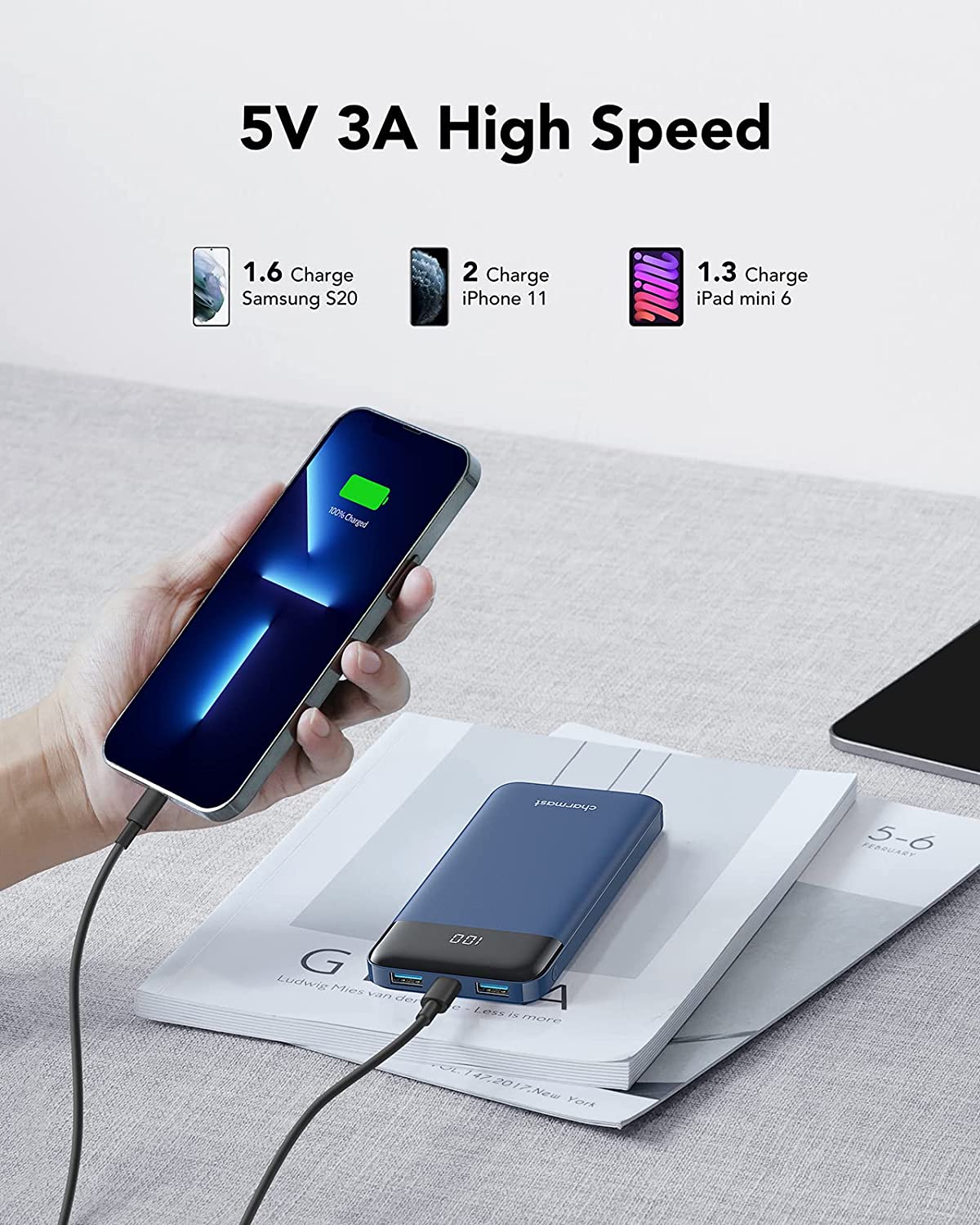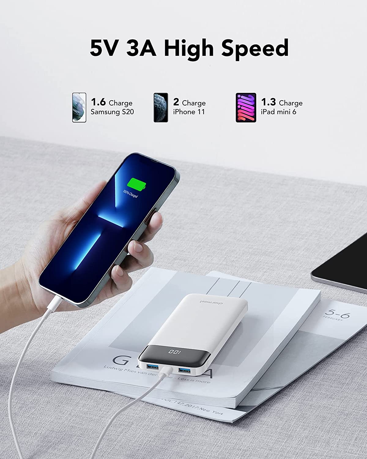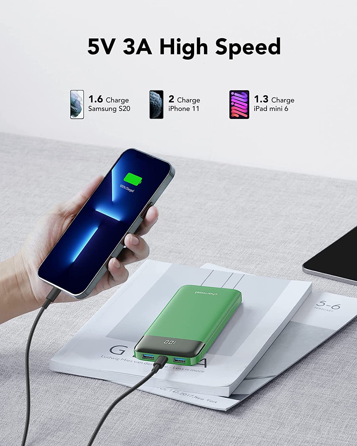 Charmast Portable Charger, USB C Battery Pack, 3A Fast Charging 10400mAh Power Bank LED Display, Slim Portable Phone Battery Charger for iPhone 13 12 11 X 8 7 Samsung S21 S20 Google LG OnePlus iPad
