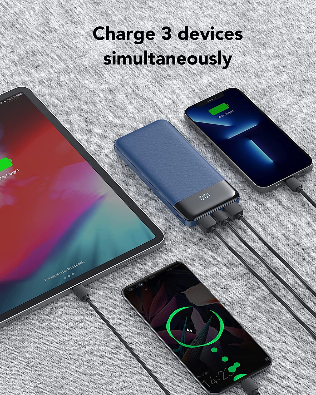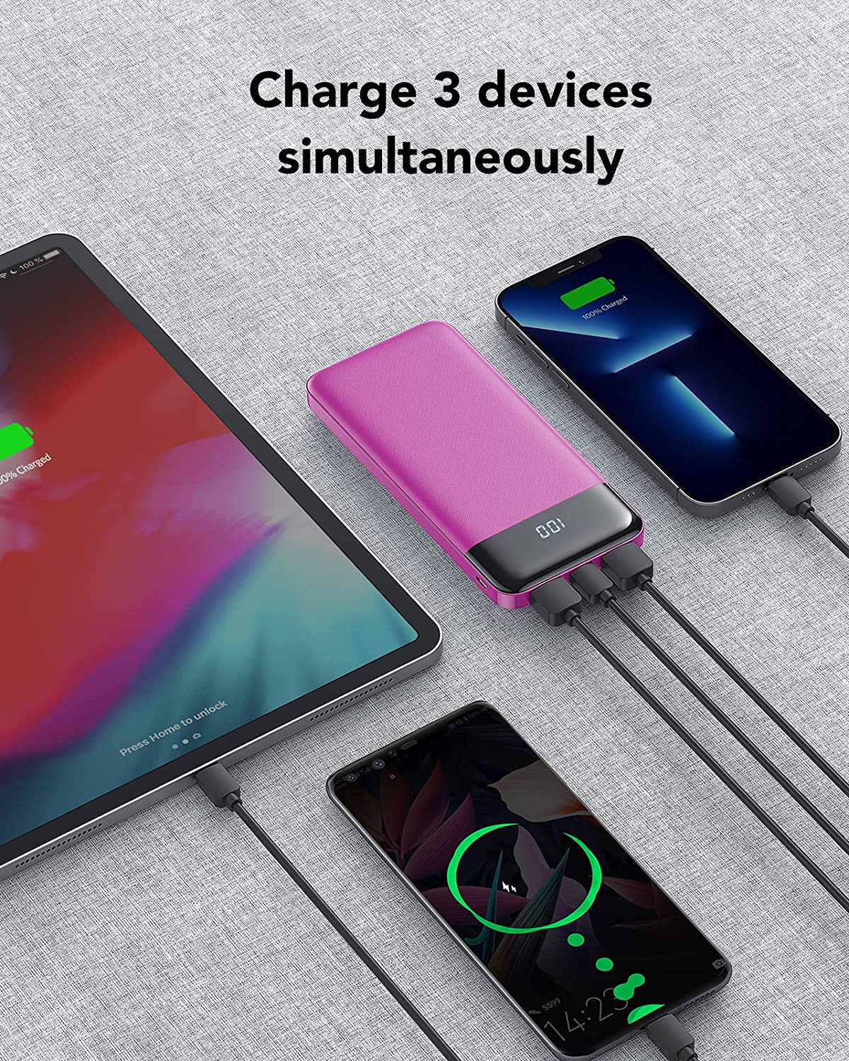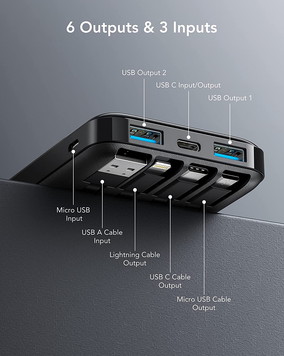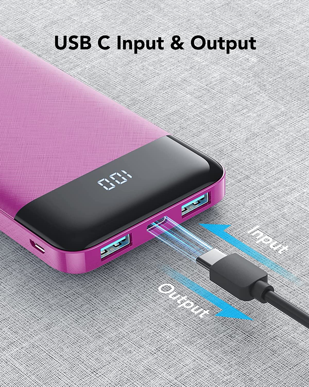 • ⚡【2 Inputs 3 Outputs】: You can recharge this battery pack smoothly via its USB C (5V 3A) input or its Micro input (5V-2A) conveniently. And fully recharged this power bank only needs 4.5 Hours via its USB C Input. Besides, portable charger totally designed with 3 outputs, that means you can charge 3 devices max simultaneously, share portable battery with your friends or family happily and each output max reach up to 5V 3A output. Total 3 outputs can reach up to 15W max.