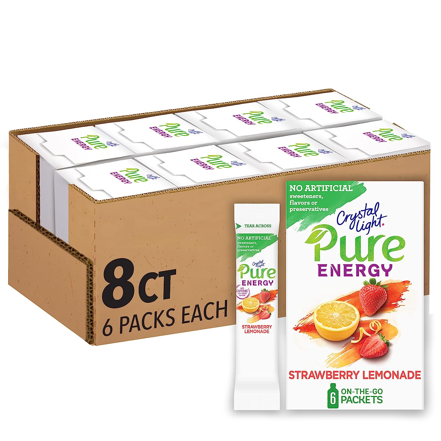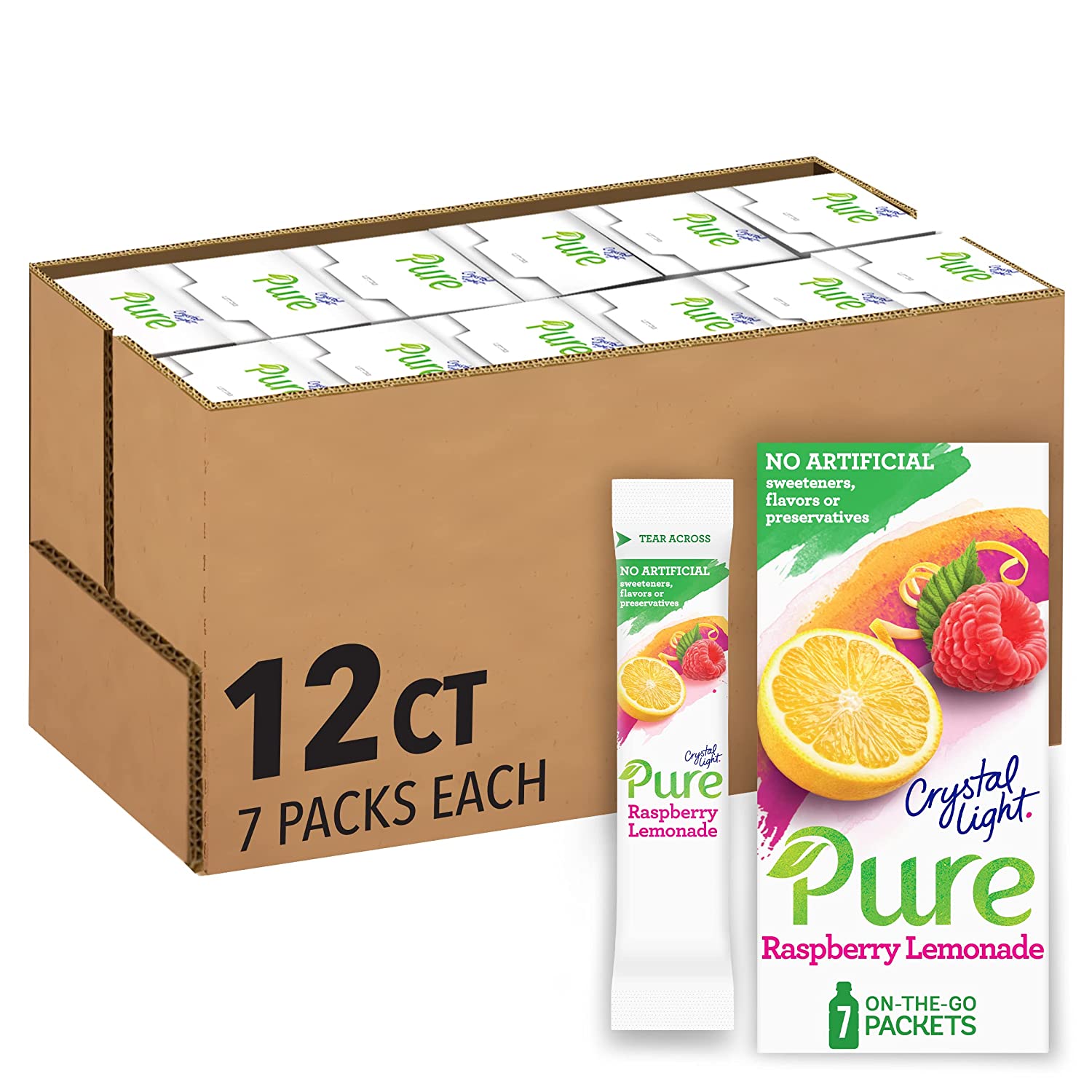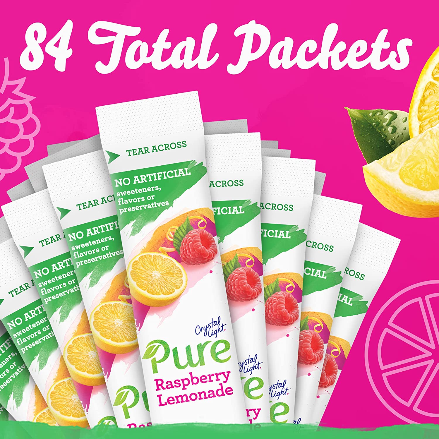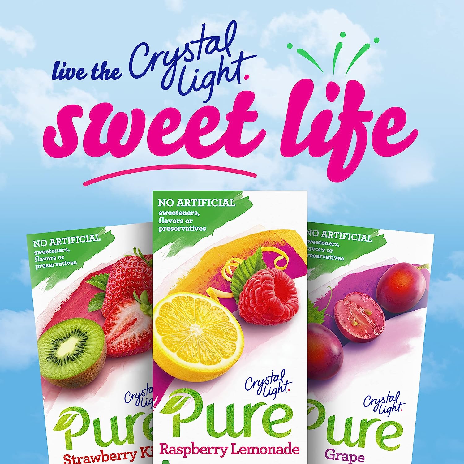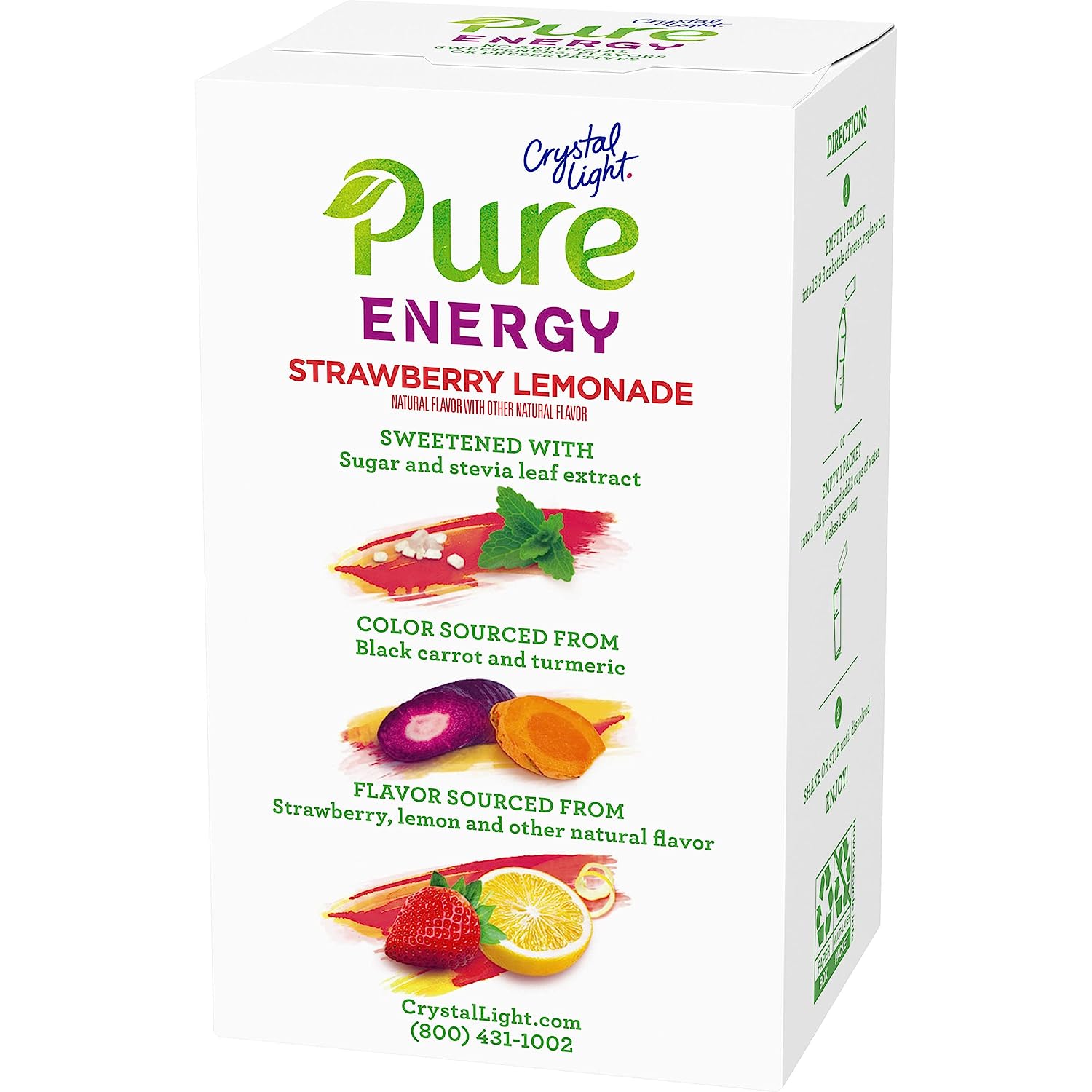 Crystal Light Pure Naturally Flavored Lemonade Powdered Drink Mix is a deliciously fruity drink you can enjoy anywhere. This powdered lemonade drink has no artificial sweeteners, flavors, or preservatives and has 90 percent fewer calories than other leading beverages (this product 10 calories, leading beverages 100 calories), so you don't have to choose between taste and calories. A total of 5 individual pitcher packs come pre-portioned in this canister of powdered lemonade mix for easy mixing without measuring, so you can enjoy a refreshing glass of Crystal Light Pure Lemonade any time. Simply empty one lemonade packet into a pitcher with 2 quarts of water, stir, and enjoy! All the flavor and no artificial sweeteners, flavors, or preservatives, just the way you like it.